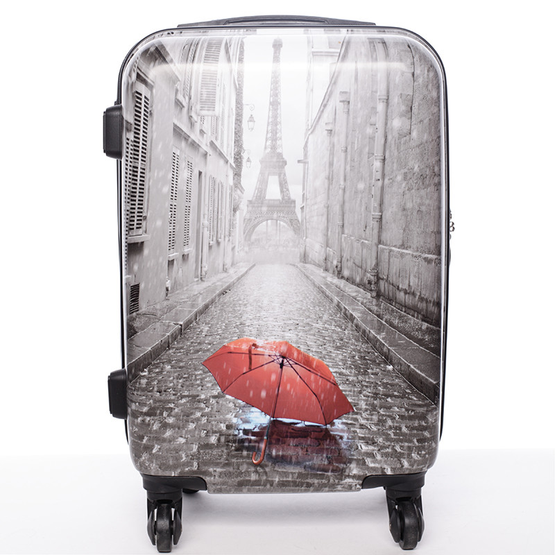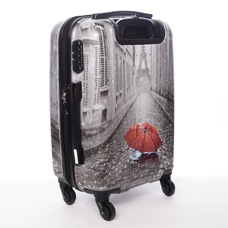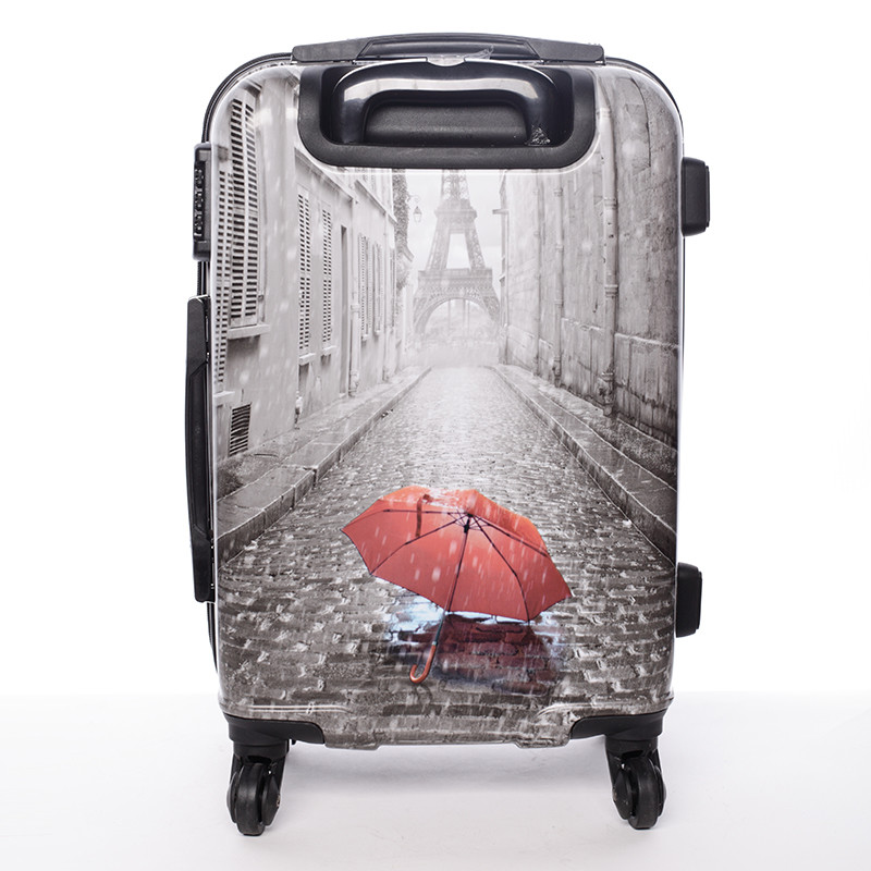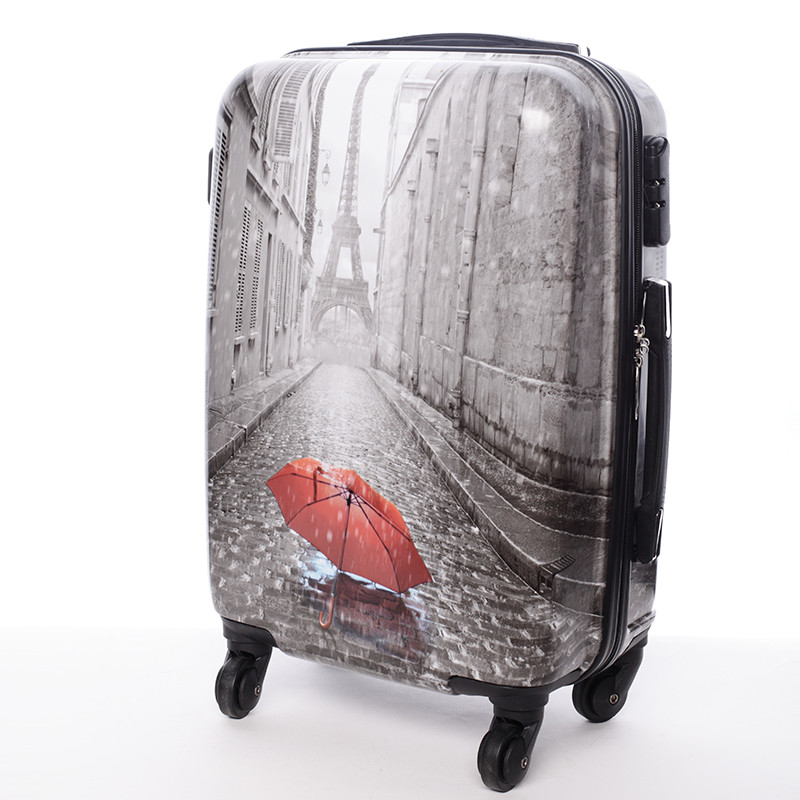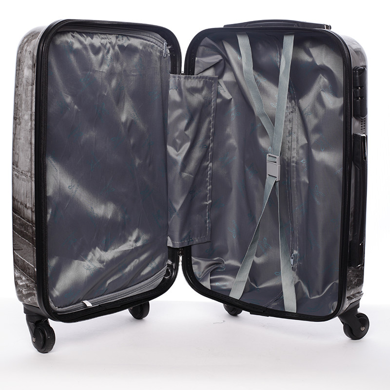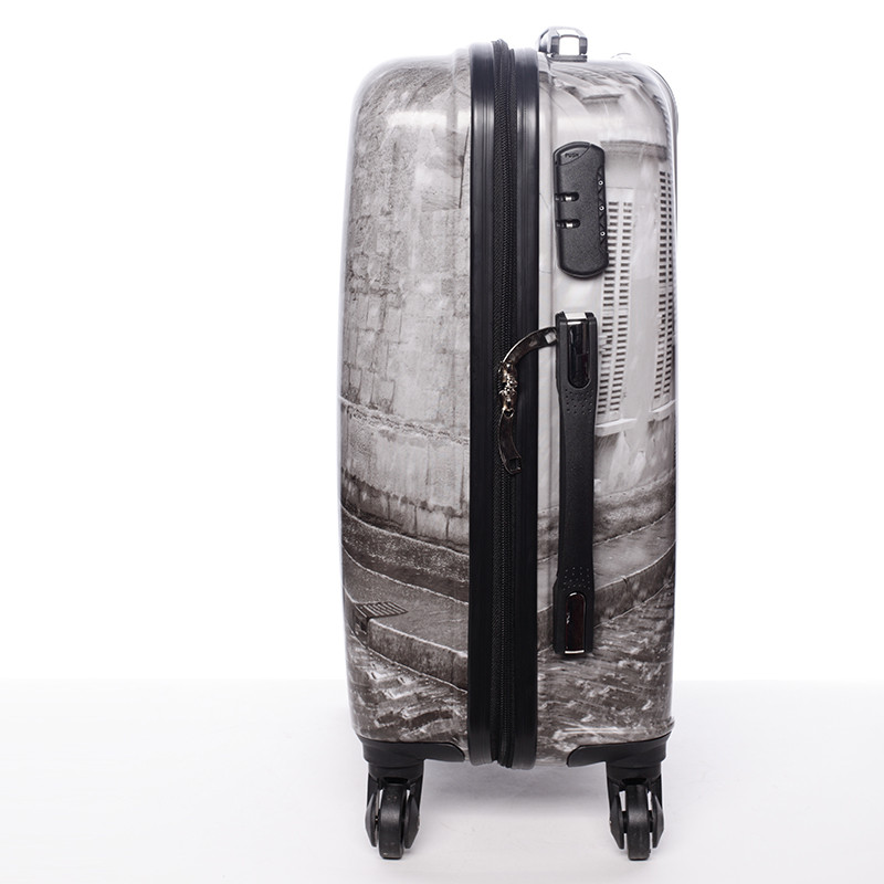 Kvalitní cestovní kufr na čtyřech kolečkách David Jones velikosti S. Jedinečné, pevné, kvalitní a prostorné zavazadlo má standardní madlo s aretací, horní a boční madlo, uvnitř upínací popruhy a velkou kapsu na zip. Díky gumovým protektorům jej můžete položit na bok a neodře se. Samozřejmostí je zabezpečení zipu kódem. Objednejte ještě dnes a vyzkoušejte, vrátit jej můžete až za 30 dnů!