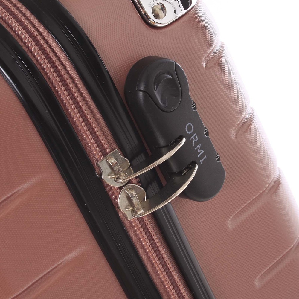 Speciální pevný kufr růžové barvy se nebojí moderní doby! Značka Ormi je kreativní a nabízí Vám nové tvary plastových kufrů se čtyřmi kolečky. Užijte si v klidu svoji dovolenou či pracovní cestu s novými značkovými kufry velikosti L. Kufr je na zip, zámek je kódovaný trojčíslím. Takže budete mít své osobní věci jistě v bezpečí. Nabízí hlavní dvoustupňovou teleskopickou rukojeť a vrchní plastovo-gumové madlo. Uvnitř uvítáte upínací popruhy a dělící prostor zipem. Kufr je vysoce odolný vůči mechanickému poškození i proti nízkým či vysokým teplotám.