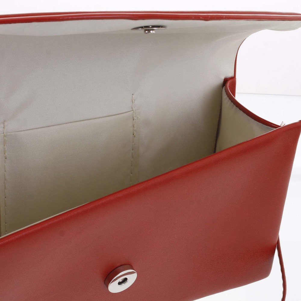Elegantní červené psaníčko v matném provedení s oválnou, leskle podkládanou, klopou se uzavírá magnetickým cvočkem, hladce doplní Váš městský outfit. Psaníčko obsahuje volnou kapsičku na drobnosti a odnímatelný pásek v barvě psaníčka. Objednejte tuto novinku na trhu ještě dnes, vyzkoušejte, vrátit ji můžete až za 30 dnů!