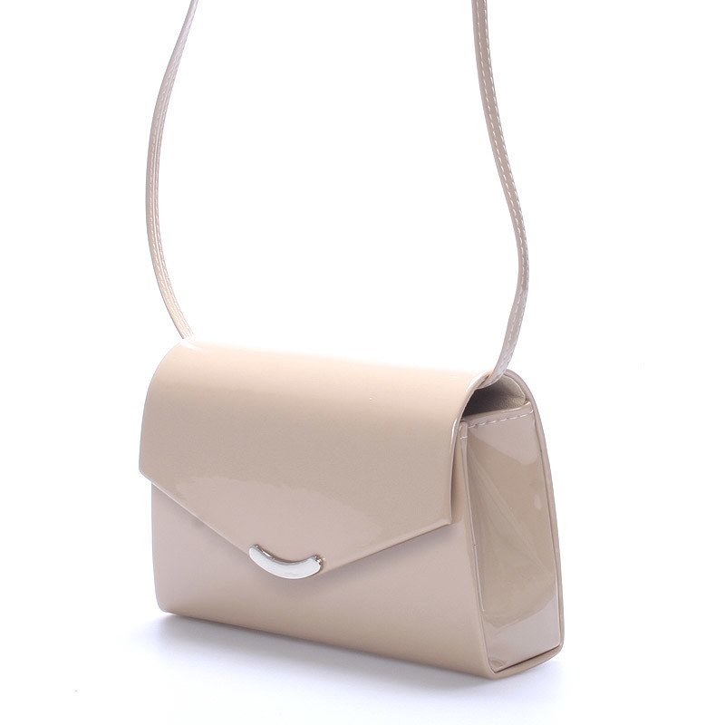 Hit od Delami! Originální dámské psaníčko. Je béžové barvy v lakované úpravě a lze je nosit ke všem společenským příležitostem. Má paktický řemínek a klopu na magnet. Psaníčko má uvnitř malou kapsičku, je pevné, menší velikosti s pevným dnem. Objednejte ještě dnes a vyzkoušejte, vrátit ji můžete až za 30 dnů!