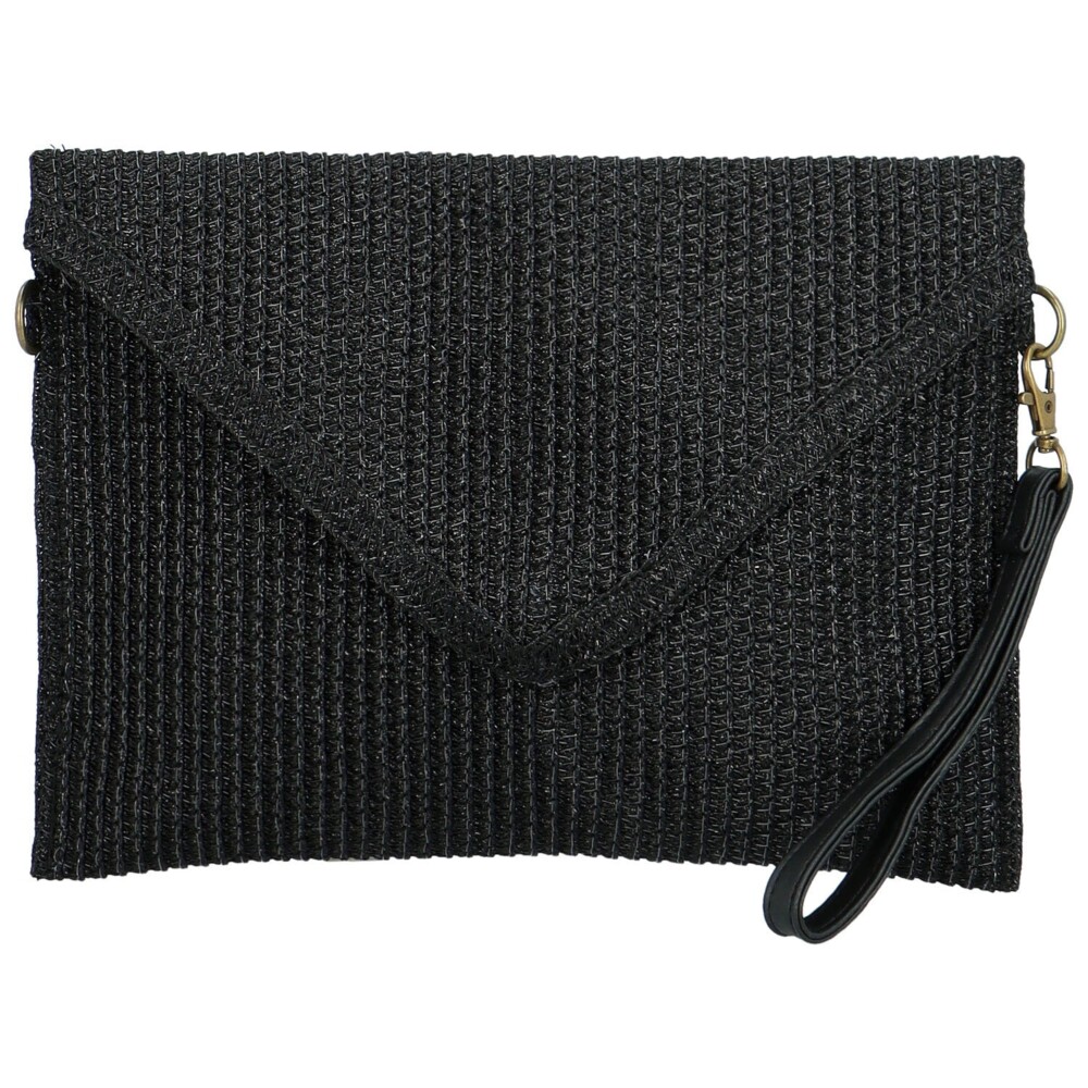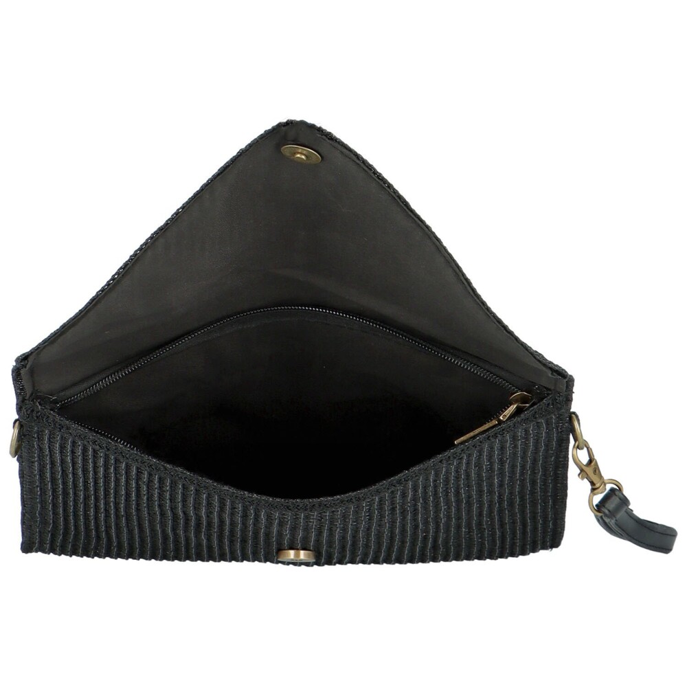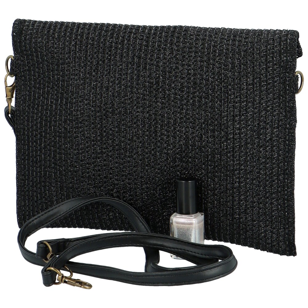 Nové městské psaníčko v černé barvě, od značky Firenze, které můžete vzít i do společnosti. Nosit jej můžete pohodlně v ruce, za poutko nebo s popruhem přes rameno či crossbody. Textilní "slamněná" elegantní a nadčasová kabelka pro ženy každého věku. Objednejte ještě dnes a vyzkoušejte, vrátit ji můžete až za 30 dnů! Klopa do písmene "V" se otevírá pomocí kovového magnetu, hlavní část je na zip. Uložíte si zde telefon, doklady i klíče a make-up.