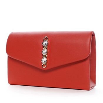 Červené dámské psaníčko Michelle Moon je ze syntetické kůže, hodit se Vám bude zejména do města nebo do společnosti. Je pevné, hranatější, jeho klopa je zaoblená. Nosit jej můžete v ruce nebo s popruhem přes rameno, ten je v podobě řetízku. Klopu otevřete magnetickým cvokem, zaujme Vás kovová sponka se třemi diamanty. Hladké psaníčko pojme peněženku, klíče, doklady a kosmetické potřeby. Je střední velikosti a uvnitř najdete malou volnou kapsičku na drobnosti. Objednejte ještě dnes a vyzkoušejte, vrátit je můžete až za 30 dnů!