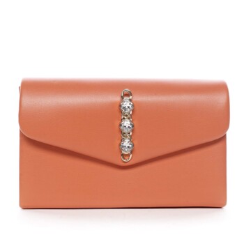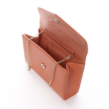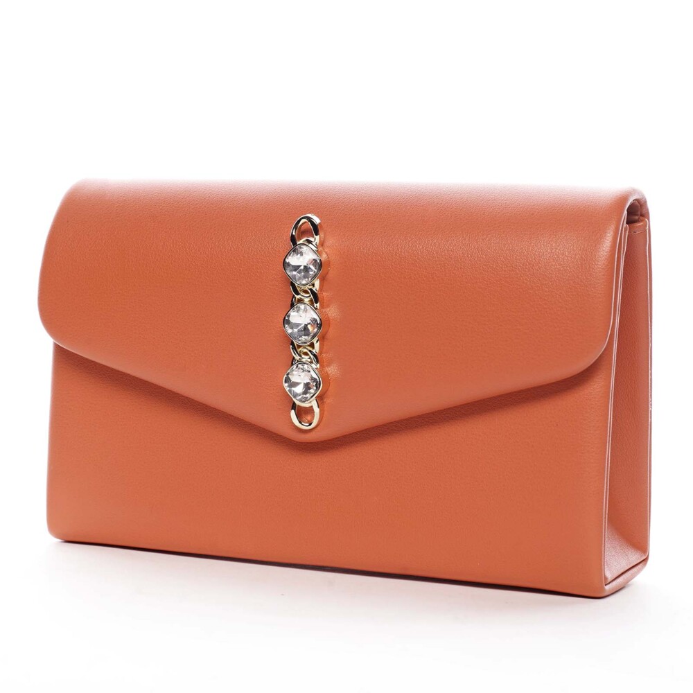 Broskvově oranžové dámské psaníčko Michelle Moon je ze syntetické kůže, hodit se Vám bude zejména do města nebo do společnosti. Je pevné, hranatější, jeho klopa je zaoblená. Nosit jej můžete v ruce nebo s popruhem přes rameno, ten je v podobě řetízku. Klopu otevřete magnetickým cvokem, zaujme Vás kovová sponka se třemi diamanty. Hladké psaníčko pojme peněženku, klíče, doklady a kosmetické potřeby. Je střední velikosti a uvnitř najdete malou volnou kapsičku na drobnosti. Objednejte ještě dnes a vyzkoušejte, vrátit je můžete až za 30 dnů!