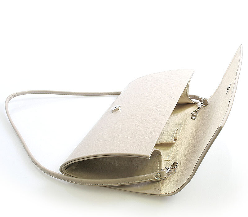V jednoduchosti je krása. Černo-bílé matné psaníčko Royal Style s klopou na magnetický cvoček je stvořeno k doplnění vaší elegance při všech společenských akcích. Uvnitř je menší kapsička bez zipu. Součástí kabelky je odnímatelný pásek v barvě psaníčka. Psaníčko lze nosit v ruce nebo s páskem přes rameno.