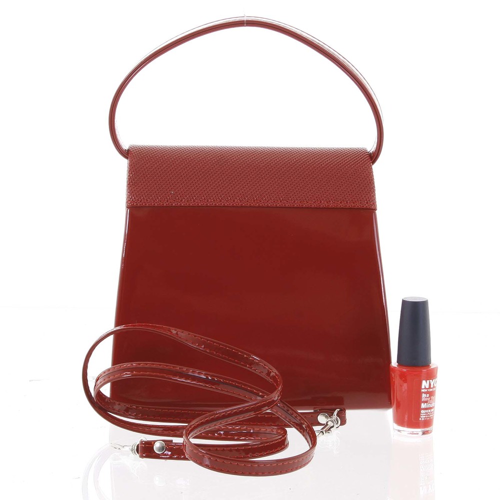 Luxusní dámské psaníčko/kabelka lakované červené se vzorovanou klopou - Delami Viseria