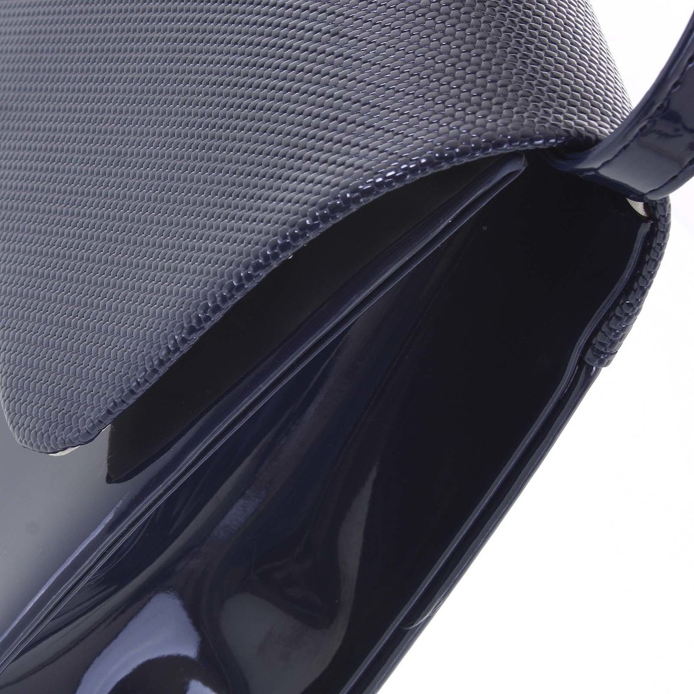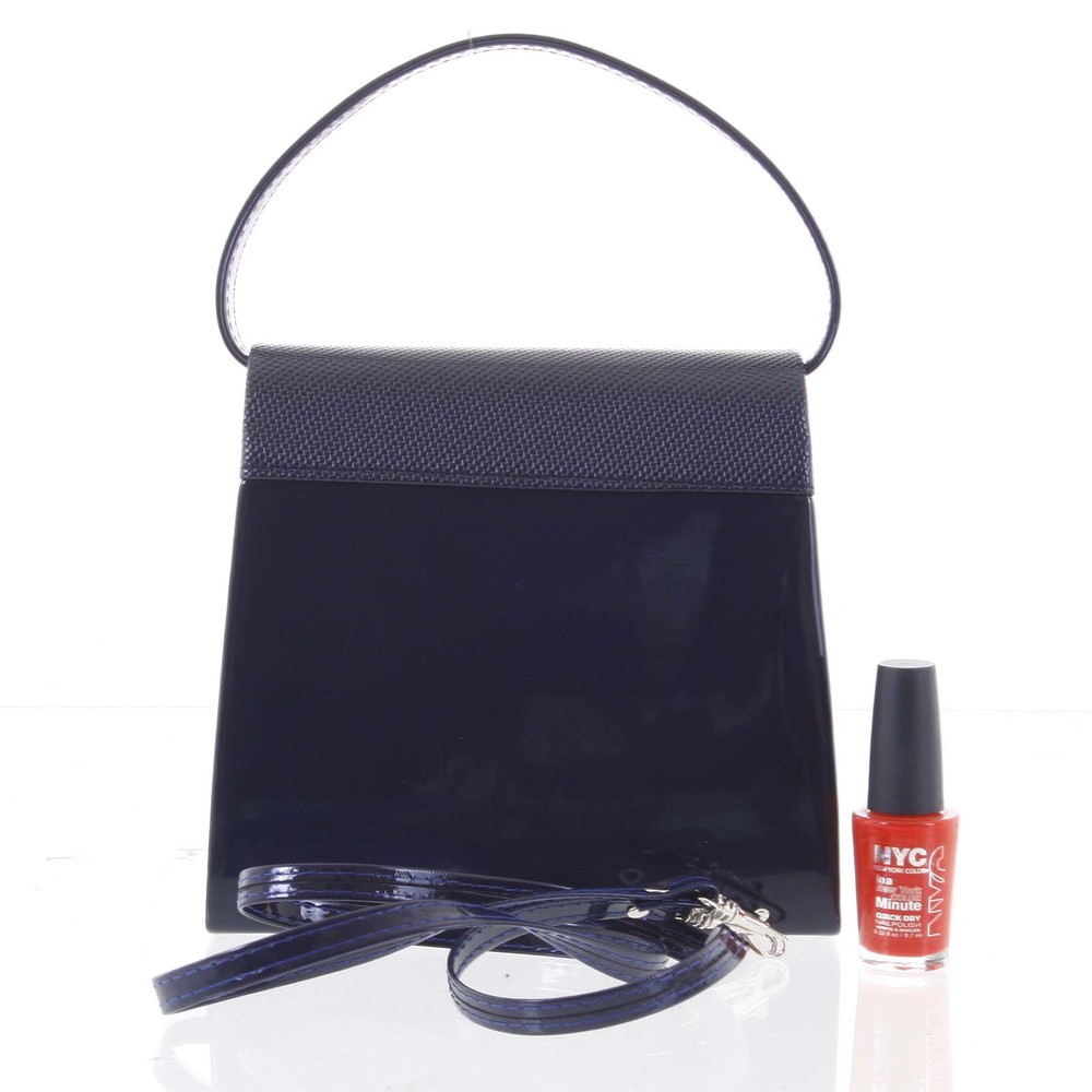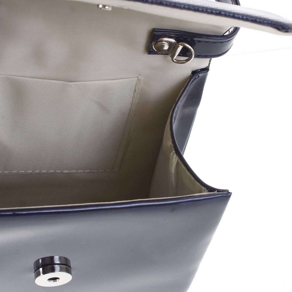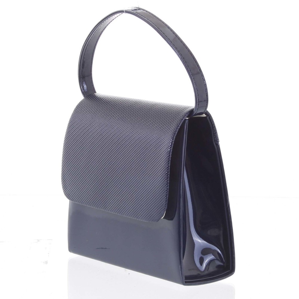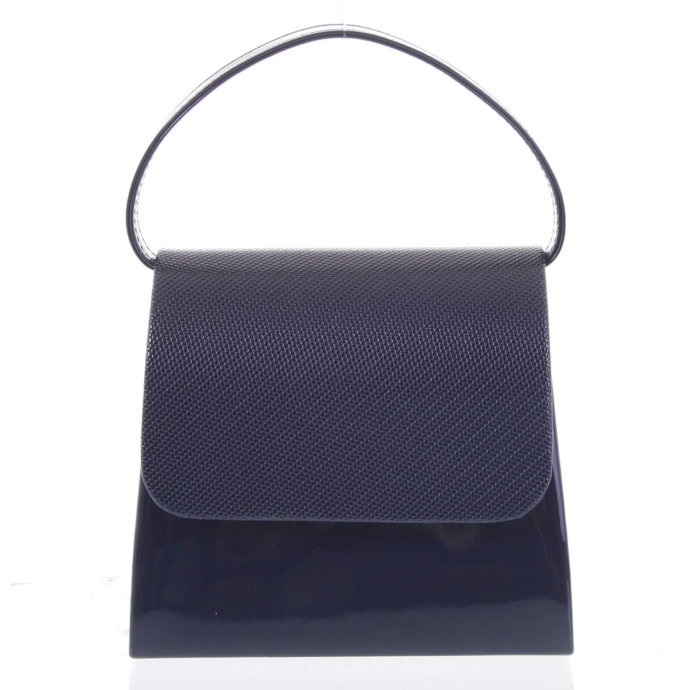 Luxusní dámské psaníčko/kabelka lakované tmavě modré se vzorovanou klopou - Delami Viseria