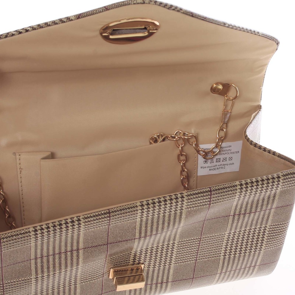 !POZOR SLEVA! Upozorňujeme, že spona psaníčka lehce odírá stříbrné kování, kovaný podklad spony. Chyba výroby, nelze reklamovat. Jemným a přitom moderním doplňkem Vašeho společenského kostýmu by se mohlo stát toto kostkované zlato černé psaníčko Delami. Pokud jste žena, která žije společenským životem, tak neváhejte a pořiďte si tento praktický syntetický módní doplněk. Je pevnější, má odnímatelný řetízek s karabinkami a klopu, která se zavírá sponou. Ta lze otáčet o 360° na libovolnou stranu. Psaníčko je střední velikosti. Lze nosit v ruce nebo s řetízkem, jako popruhem, přes rameno. Uvnitř je malá kapsička na drobnosti. Objednejte ještě dnes a vyzkoušejte, vrátit ho můžete až za 30 dnů!