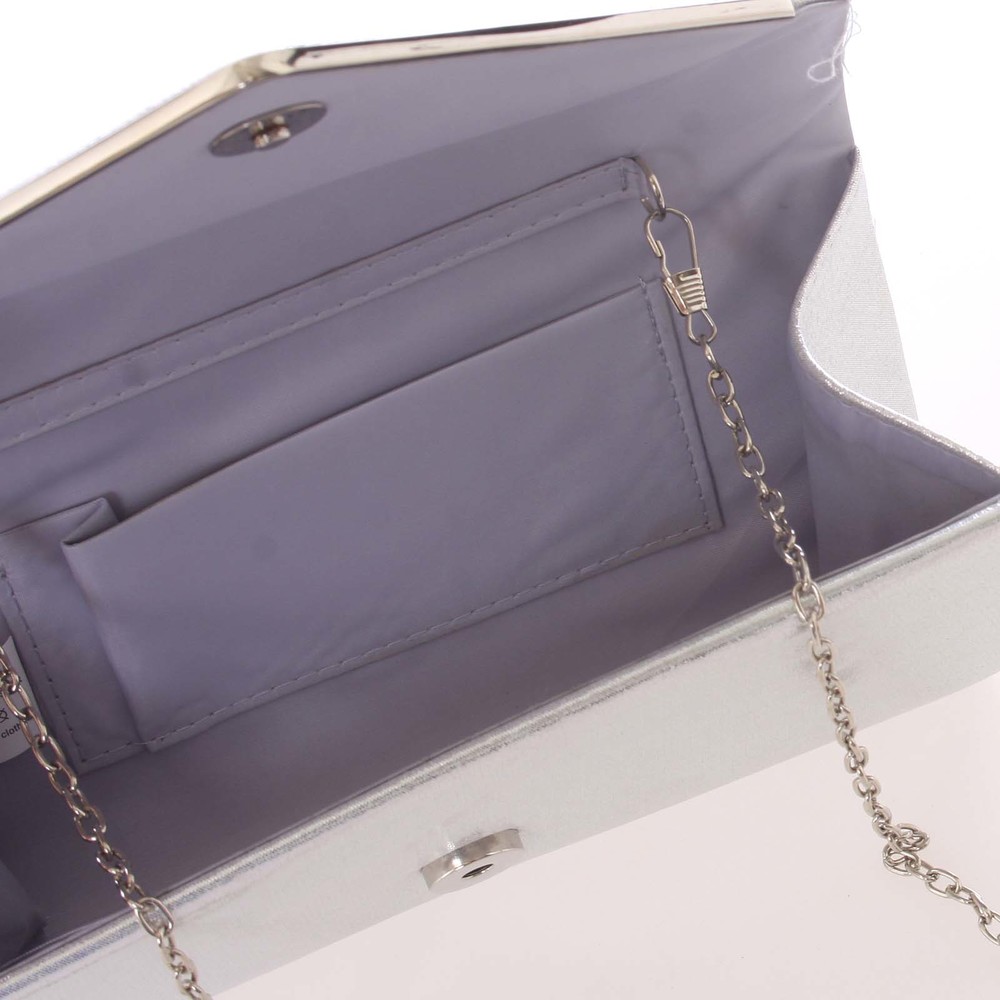 Moderní saténové dámské psaníčko stříbrné s glitterem - Delami D697