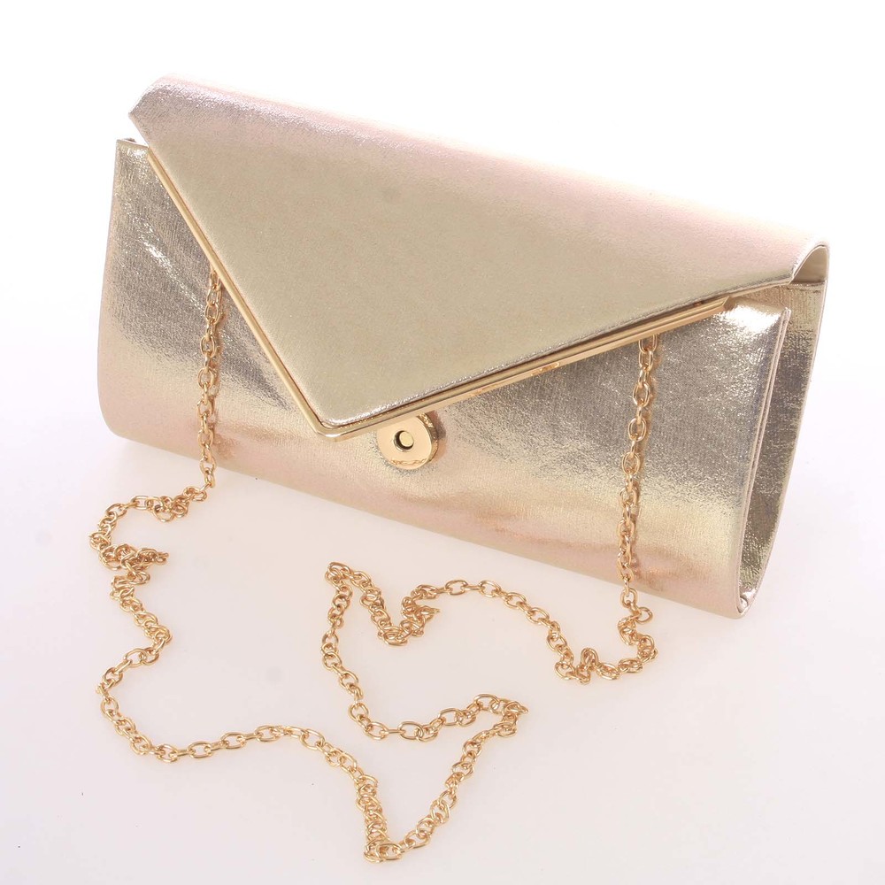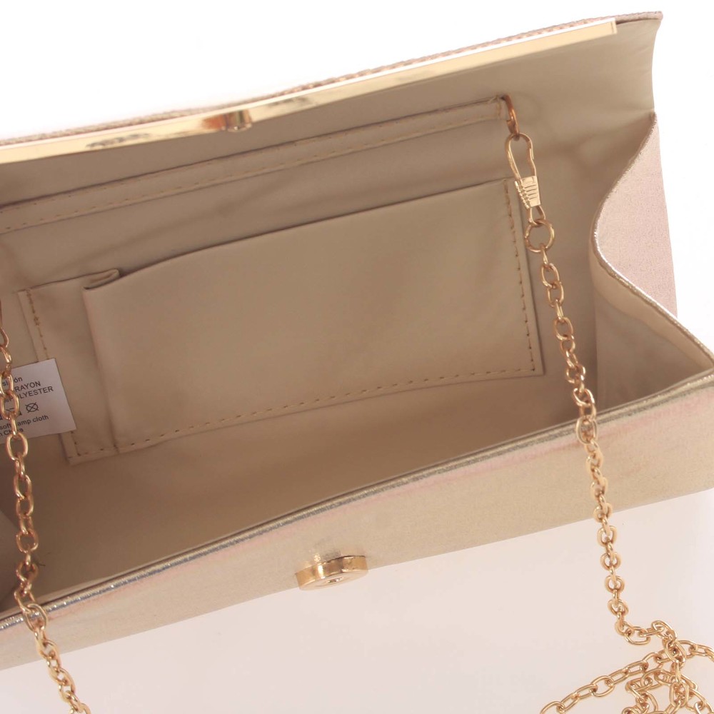 Moderní saténové dámské psaníčko zlaté s glitterem - Delami D697