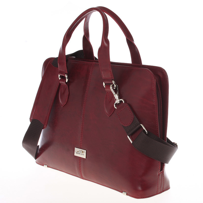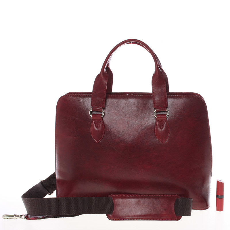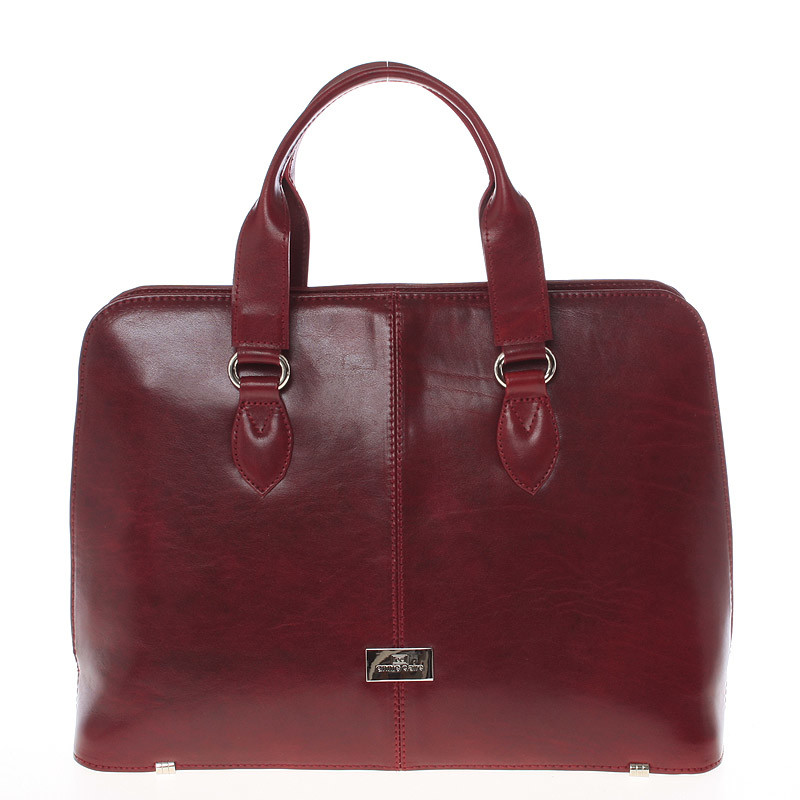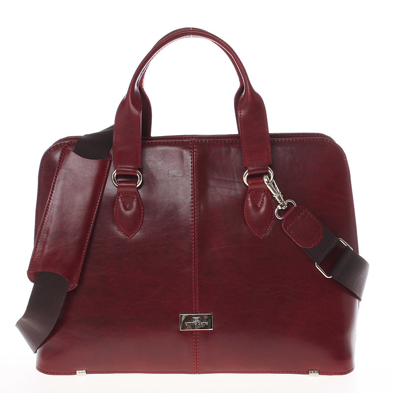 Pevná luxusní dámská vínová kožená aktovka - Annie Claire Boom