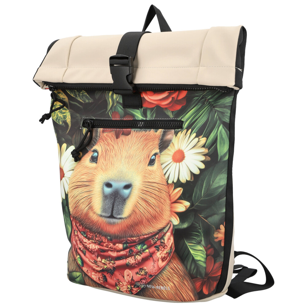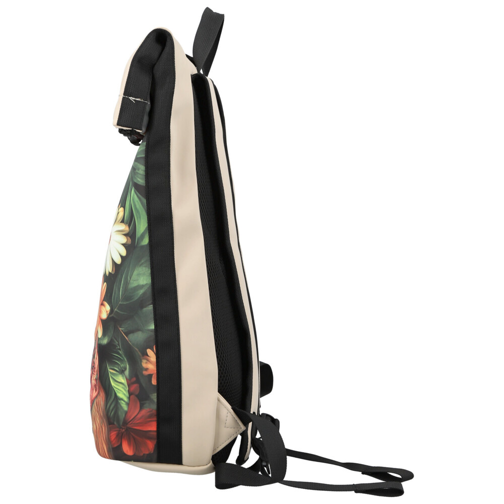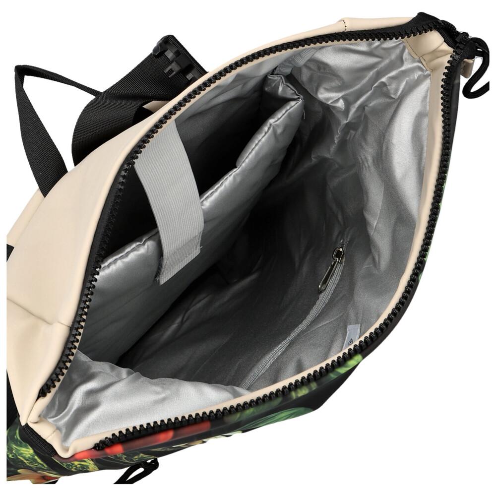 Béžový roll-on batoh New Rebels v hravém dámském stylu spojuje praktičnost s originálním vzhledem. Horní překlop se uzavírá rolováním a následným zapnutím zipu, což chrání všechny uložené věci i při horším počasí. Uvnitř hlavního prostoru objevíte praktickou přihrádku na notebook, která udržuje zařízení odděleně a bezpečně. Přední stranu zdobí výrazný motiv, zatímco spodní část, popruhy i překlop jsou v elegantní béžové barvě. Menší přední kapsička na zip poskytuje prostor na telefon, klíče nebo další drobnosti. Polstrované ramenní popruhy zajišťují pohodlné nošení po celý den. Ideální volba pro studentky, do práce i na volný čas. Objednejte ještě dnes a vyzkoušejte, vrátit jej můžete až do 30 dnů!