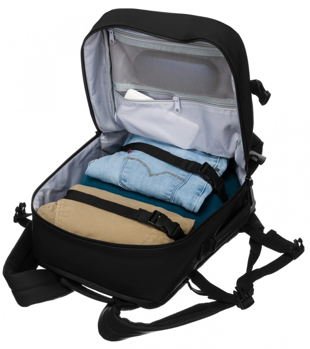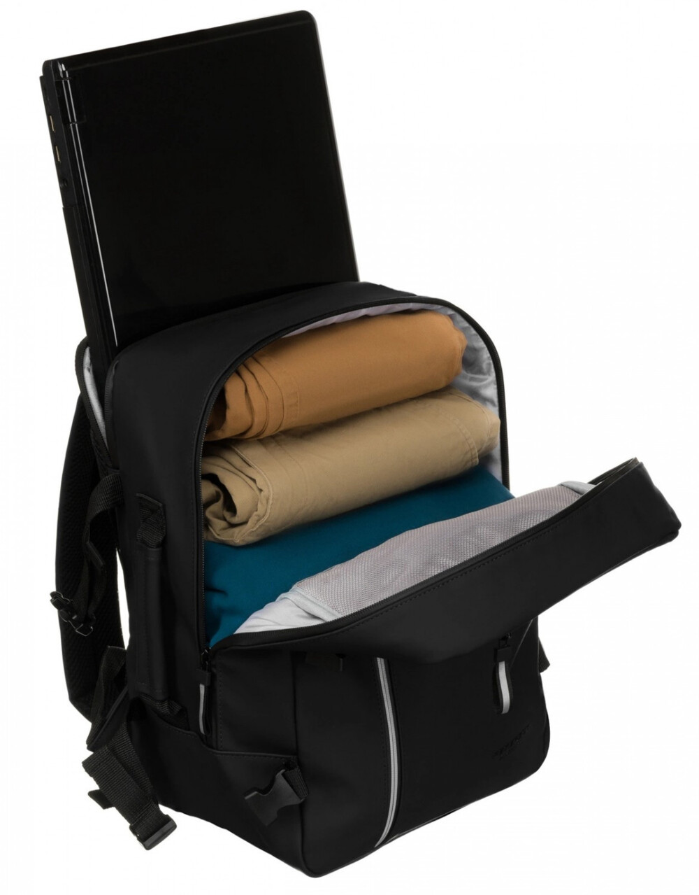 Textilní batoh z nepromokavé textilie je praktickým a stylovým doplňkem pro každodenní použití. Hlavní kapsa je uzavíratelná na zip a nabízí dostatek prostoru pro všechny potřebné věci. Uvnitř se nacházejí i praktické síťové kapsy na zip pro drobnosti a popruhy pro zajištění například oblečení. V zadní části je samostatná zipová kapsa určená na notebook. Záda i ramenní popruhy jsou vypolstrované pro maximální pohodlí při nošení, na zadní straně navíc nechybí další zipová kapsa. Batoh má pevné ucho v horní i boční části, díky čemuž se dá snadno přenášet i jako taška. Přední stranu zdobí svislá zipová kapsa přes celý batoh a decentní logo značky, které dotváří jeho moderní vzhled. Objednejte ještě dnes a vyzkoušejte, vrátit jej můžete až do 30 dnů!