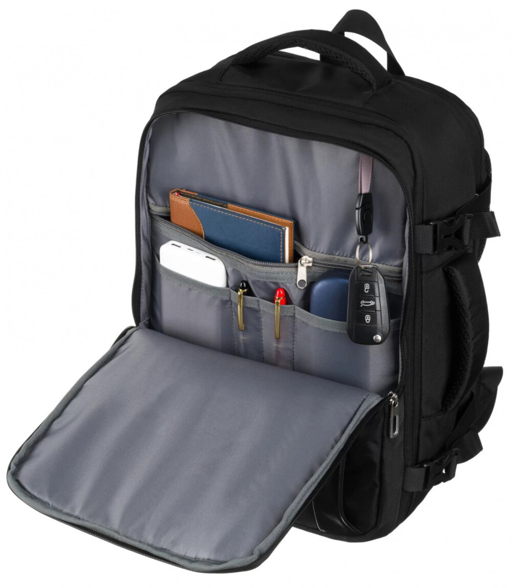 Textilní batoh působí prakticky a moderně. V zadní části má velkou zipovou kapsu, kam se vejdou všechny potřebné věci jako oblečení, dokumenty i školní pomůcky. V přední části se nacházejí další dvě kapsy, z nichž jedna je speciálně určená pro notebook. Přední stranu zdobí decentní logo značky a svislá zipová kapsa pro drobnosti. Batoh má pevné ucho v horní části a na boku, takže ho lze nosit i jako tašku. Záda i ramenní popruhy jsou vypolstrované pro pohodlné nošení, popruhy jsou navíc nastavitelné. Celkový vzhled doplňuje stříbrné kování. Objednejte ještě dnes a vyzkoušejte, vrátit jej můžete až do 30 dnů!