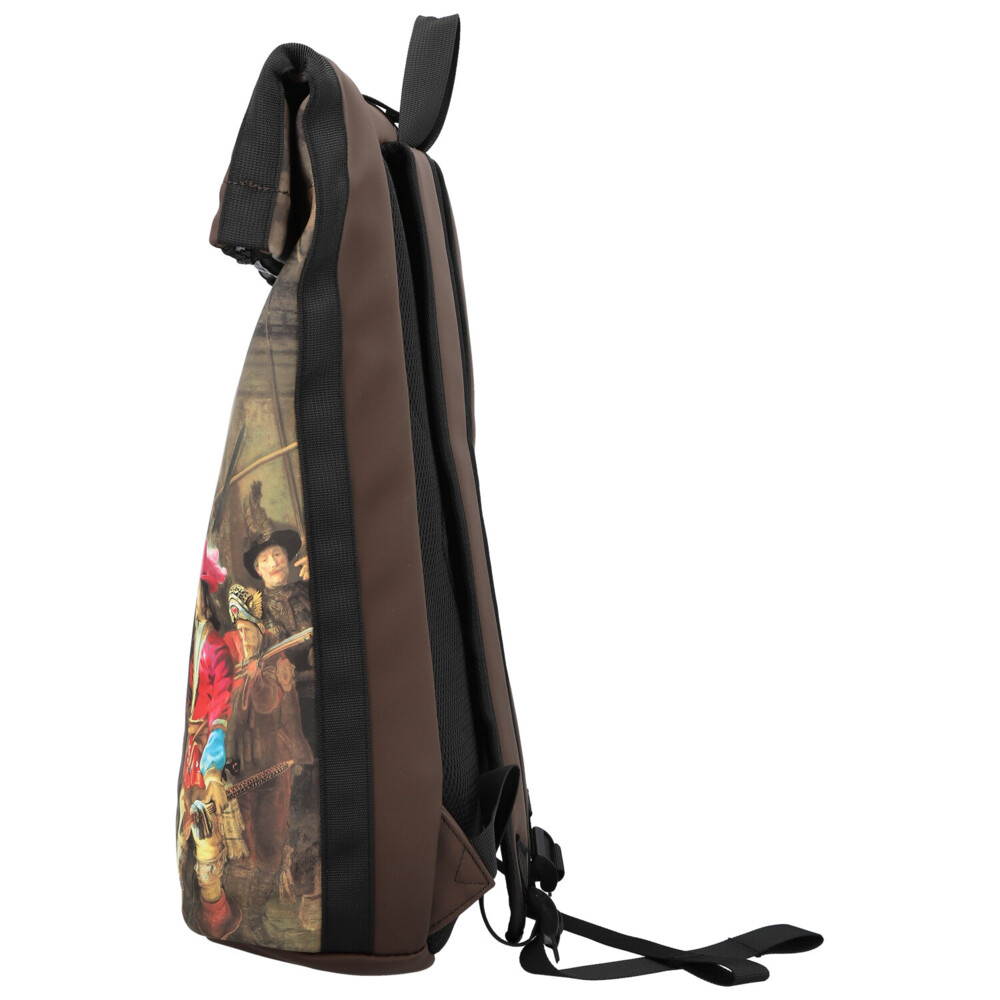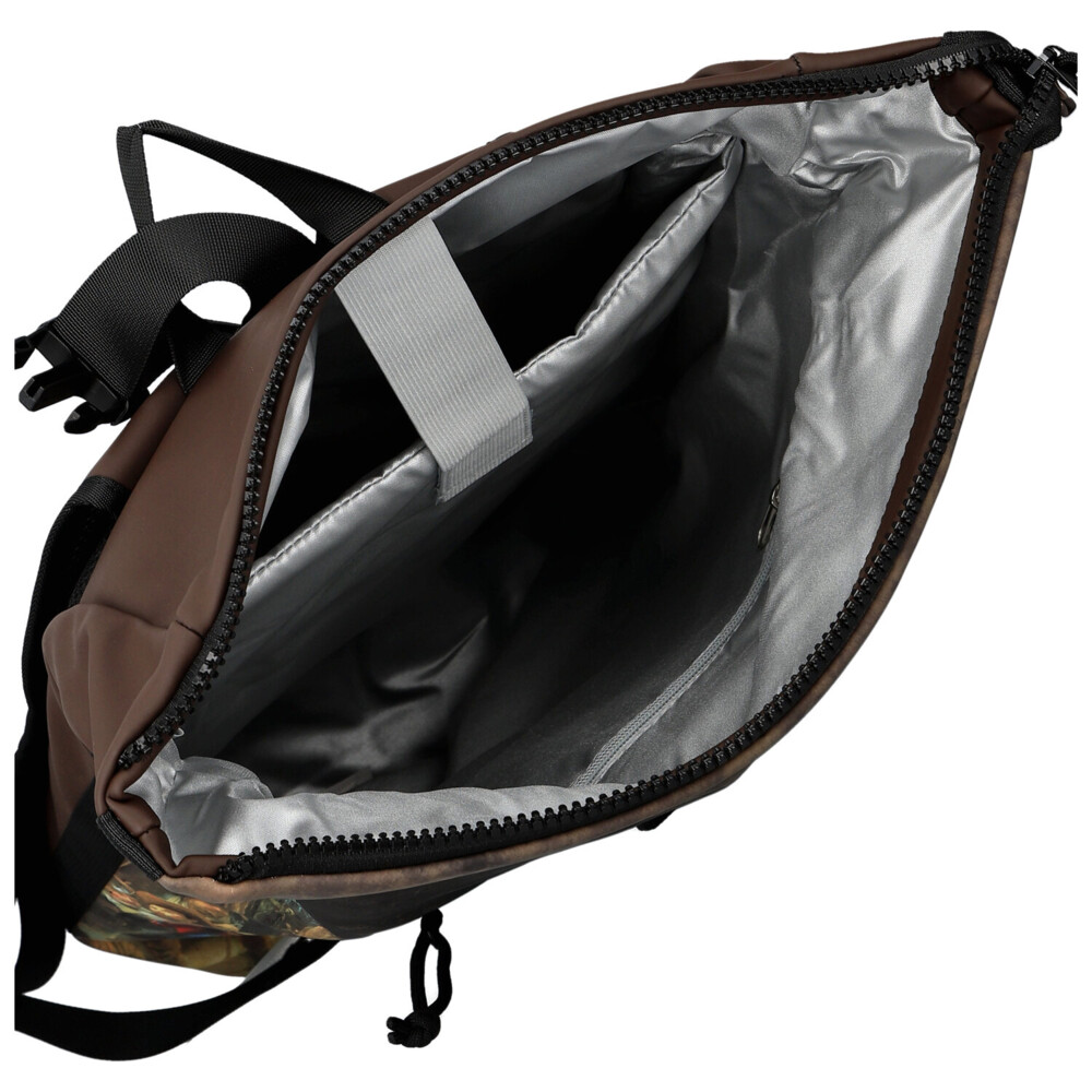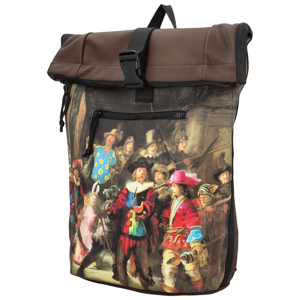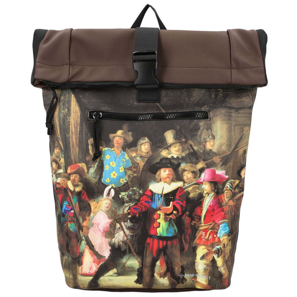 Hnědý roll-on batoh New Rebels kombinuje nadčasový městský styl s uměleckým nádechem. Přední stranu zdobí detailní napodobenina slavného historického obrazu, která batohu dodává originální a výrazný vzhled. Horní část se uzavírá rolováním a zipem, což spolehlivě chrání obsah před okolními vlivy. V hlavní kapse najdete praktickou přihrádku na notebook, ideální pro každodenní pracovní či studijní povinnosti. Menší zipová kapsa na přední straně nabízí místo pro drobnosti, které chcete mít okamžitě po ruce. Polstrované ramenní popruhy zajišťují pohodlné nošení i při delším pohybu po městě. Stylový batoh vhodný na každý den, který vás zaujme svou praktičností i designem. Objednejte ještě dnes a vyzkoušejte, vrátit jej můžete až do 30 dnů!
