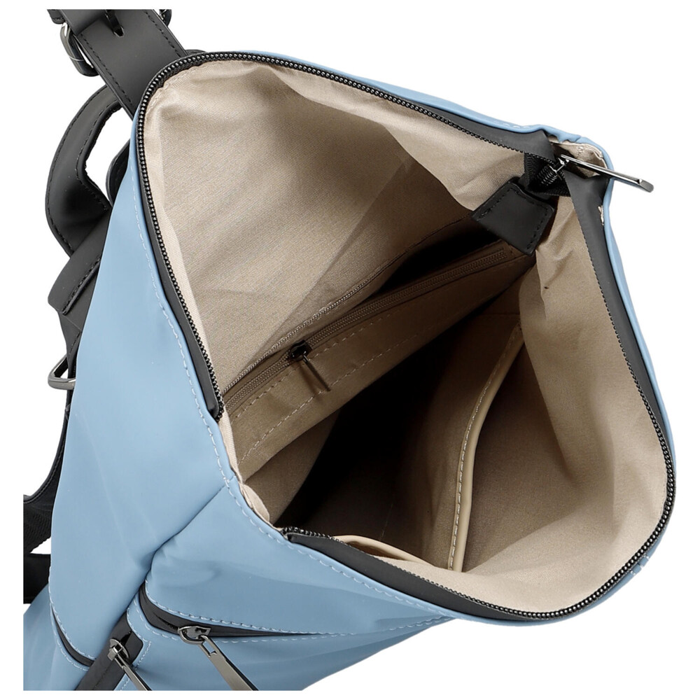 Stylový kabelko-batoh, který drží krok s vaším tempem. Moderní design z pogumovaného syntetického materiálu zaujme čistými liniemi i praktickým provedením. Vrchní část lze elegantně přehnout a zajistit magnetickým drukem, zatímco ozdobná přezka dodává modelu originální vzhled. Díky chytrému systému nastavitelných popruhů proměníte batoh jedním zatažením na kabelku přes rameno nebo pohodlné crossbody. Kontrastní odstín popruhů a pevného ucha vytváří svěží a trendy detail. Hlavní kapsa se zapínáním na zip bezpečně uschová vše potřebné, uvnitř nechybí praktické kapsičky v podšívce. Na zadní straně navíc větší zipová kapsa. Perfektní volba pro ženy, které chtějí spojit městský styl, praktičnost a variabilitu v jednom doplňku. Objednejte ještě dnes a vyzkoušejte, vrátit jej můžete až do 30 dnů!