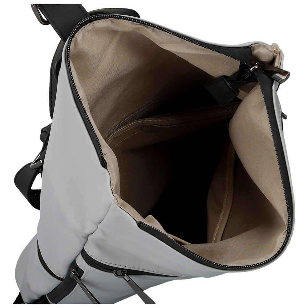 Stylový kabelko-batoh, který drží krok s vaším tempem. Moderní design z pogumovaného syntetického materiálu zaujme čistými liniemi i praktickým provedením. Vrchní část lze elegantně přehnout a zajistit magnetickým drukem, zatímco ozdobná přezka dodává modelu originální vzhled. Díky chytrému systému nastavitelných popruhů proměníte batoh jedním zatažením na kabelku přes rameno nebo pohodlné crossbody. Kontrastní odstín popruhů a pevného ucha vytváří svěží a trendy detail. Hlavní kapsa se zapínáním na zip bezpečně uschová vše potřebné, uvnitř nechybí praktické kapsičky v podšívce. Na zadní straně navíc větší zipová kapsa. Perfektní volba pro ženy, které chtějí spojit městský styl, praktičnost a variabilitu v jednom doplňku. Objednejte ještě dnes a vyzkoušejte, vrátit jej můžete až do 30 dnů!