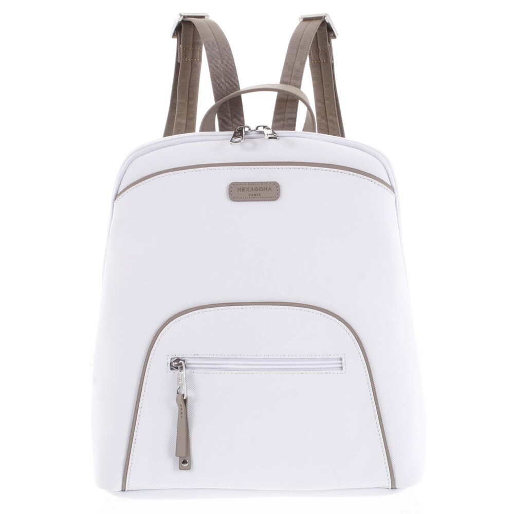 Perfektní bílý batoh střední velikosti, značky Hexagona. Objednejte ještě dnes a vyzkoušejte, vrátit jej můžete až za 30 dnů! Hlavní charakteristikou, kterou Vás tento syntetický batoh zaujme je lehkost, design a zejména kvalita. Batoh je měkký, s pevnějším dnem, je stabilní a vodě odolný. Hlavní kapsa se otevírá duálním zipem až téměř ke dnu, na bocích jsou všity membrány, nic Vám tedy z batůžky nevypadne. Klasickými kapsičkami je vyladěn i tento batoh. ✅ Bonusovou částí je kapsa na tablet nebo malý notebook (max. 22 x 23 cm). Materiál, ze kterého je batoh ušit je velmi moderně vzorovaný, lehce hrubší. Ucho batohu pro manipulaci v ruce je hladké. Popruhy jsou z klasického kvalitního nylonu. Batůžek doplňuje kapsička na přední straně s koženkovým páskem na jezdci a nechybí zde ani nenápadné, přesto módní, logo značky. Nosit jej můžete do města, na procházky, ale i do práce, jako pomocníka pro osobní a potřebné věc