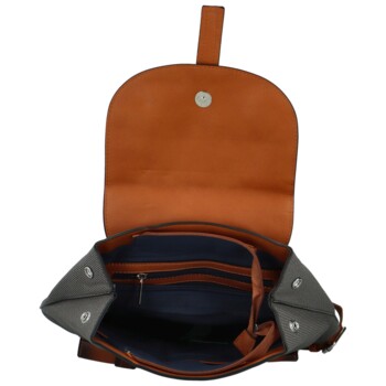 Designový kousek, který vás zaujme svou přední stranou na které jsou dvě hnědé menší kapsy, zajištěné přezkou a koženková klopa ve stejné barvě kapes. Po otevření klopy na magnetický druk nabízí batoh hlavní kapsu na zip. Vnitřek batohu je světlý s několika přihrádkami. Zadní díl disponuje menší kapsičkou na zip. Popruhy se dají regulovat a jsou z části textilní a z části koženkové, nošení tak bude radost. Ucho je pevné, pro nošení v ruce či zavěšení. Objednejte ještě dnes a vyzkoušejte, vrátit jej můžete až do 30 dnů!