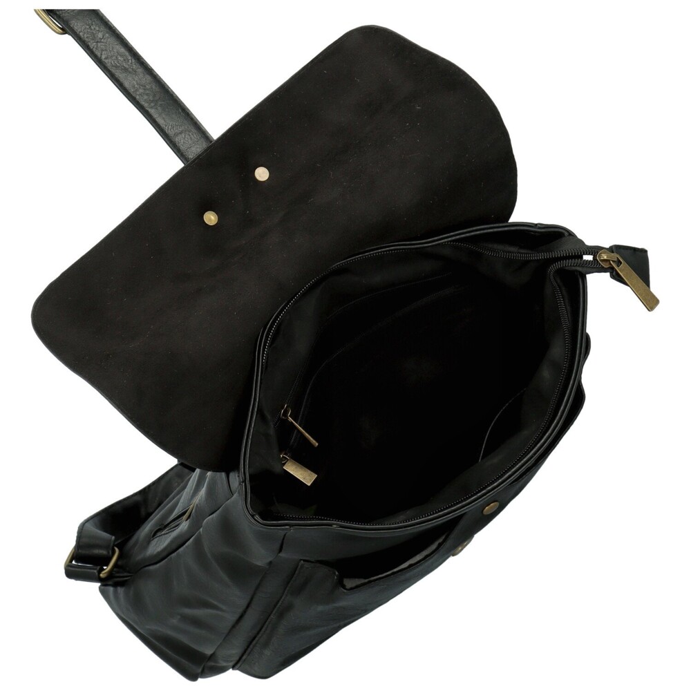 Nadčasový a praktický kousek na vaše cestování. Klopa batohu se otevírá na druk, mosazná přezka je jen ozdobná. Pod ní je hlavní kapsa na zip, pro maximálně bezpečné uložení vašich osobních věcí a všeho, co nosíte sebou. Nechybí vnitřní postranní přihrádky na drobnosti či mobil. Je tam i všitá kapsa se zipem, která prostor částečně rozděluje. Přední díl, má také menší kapsu pod klopou. Ucho je pevné, krátké do ruky či na pověšení. Popruhy jsou dostatečně dlouhé, s možností regulace pro pohodlné nošení po celý den. Zadní díl má svislou zipovou kapsu. Celkový trendy vzhled, umocňuje mosazné kování. Objednejte ještě dnes a vyzkoušejte, vrátit jej můžete až do 30 dnů!