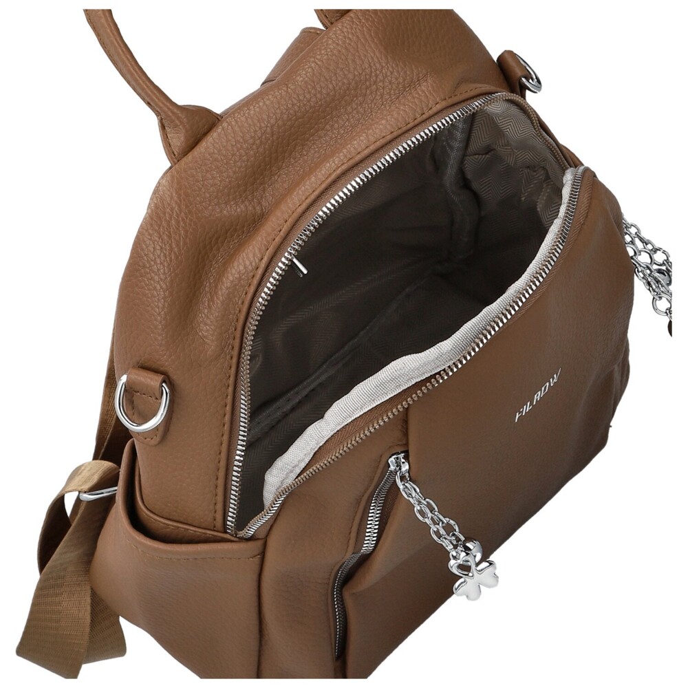 Moderní koženkový batůžek, který zaujme na první pohled svým elegantním designem a stříbrnými detaily. Přední část zdobí dvojice svislých zipů s ozdobnými taháčky, které batůžku dodávají styl a šmrnc. Po stranách nechybí praktické otevřené kapsy na láhev či drobnosti, na zadní straně je diskrétní zipová kapsa. Hlavní prostor se zapíná na zip a uvnitř se ukrývají kapsičky v podšívce pro dokonalý přehled. Batůžek doplňuje pevné ucho, nastavitelné popruhy a elegantní stříbrné kování. Logo značky na přední straně podtrhuje jeho moderní charakter. Stylový doplněk, který spojuje praktičnost a eleganci v každém detailu. Objednejte ještě dnes a vyzkoušejte, vrátit jej můžete až za 30 dnů!