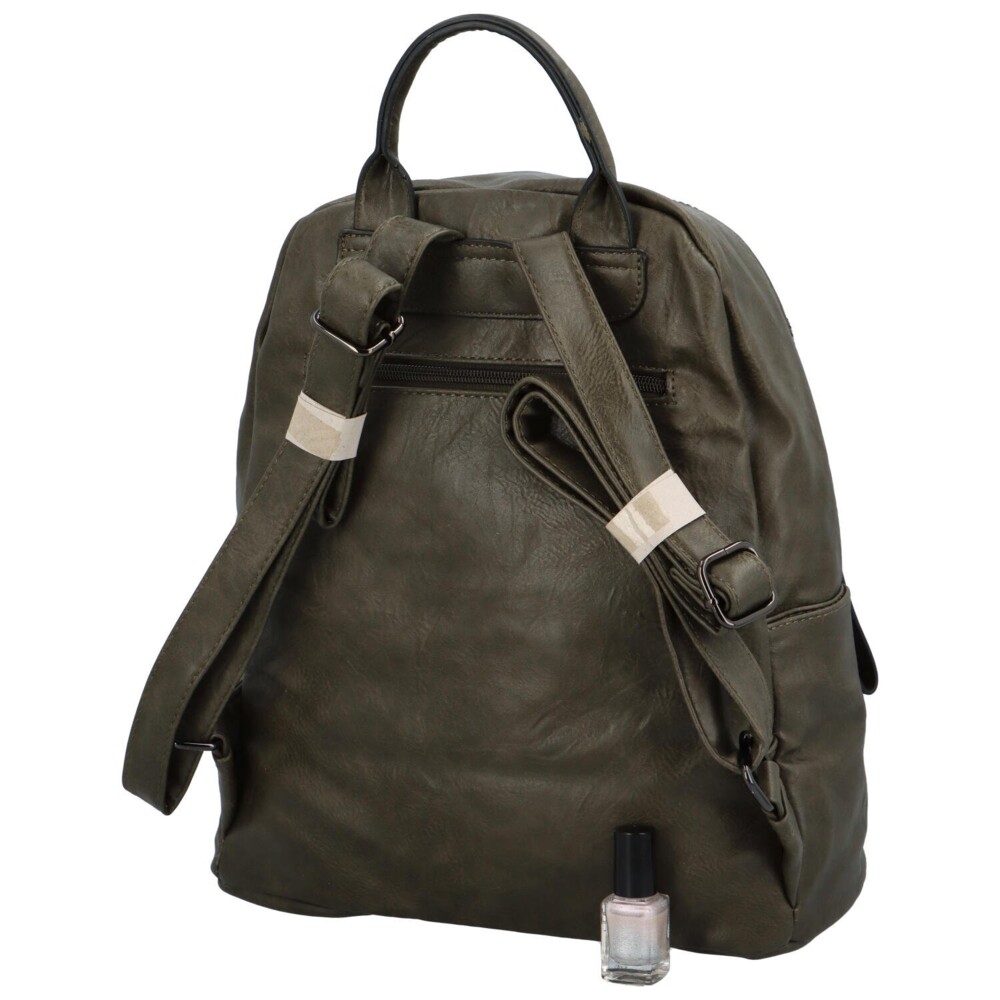Výrazný, dámský koženkový batoh pro vaše pohodlné a volné dny. Nabízí hlavní kapsu na zip, pro uložení vašich důležitých věcí. Uvnitř nechybí postranní přihrádky na drobnosti i menší kapsa na zip. Přední díl je vybaven kapsou, která má dva výrazné stříbrné zipy. Ucho je pevné a krátké do ruky. Popruhy pro pohodlné nošení na ramenou se dají regulovat. Na zadní straně malá zipová kapsička. Tak objednejte ještě dnes a vyzkoušejte, vrátit jej můžete do 30ti dnů.