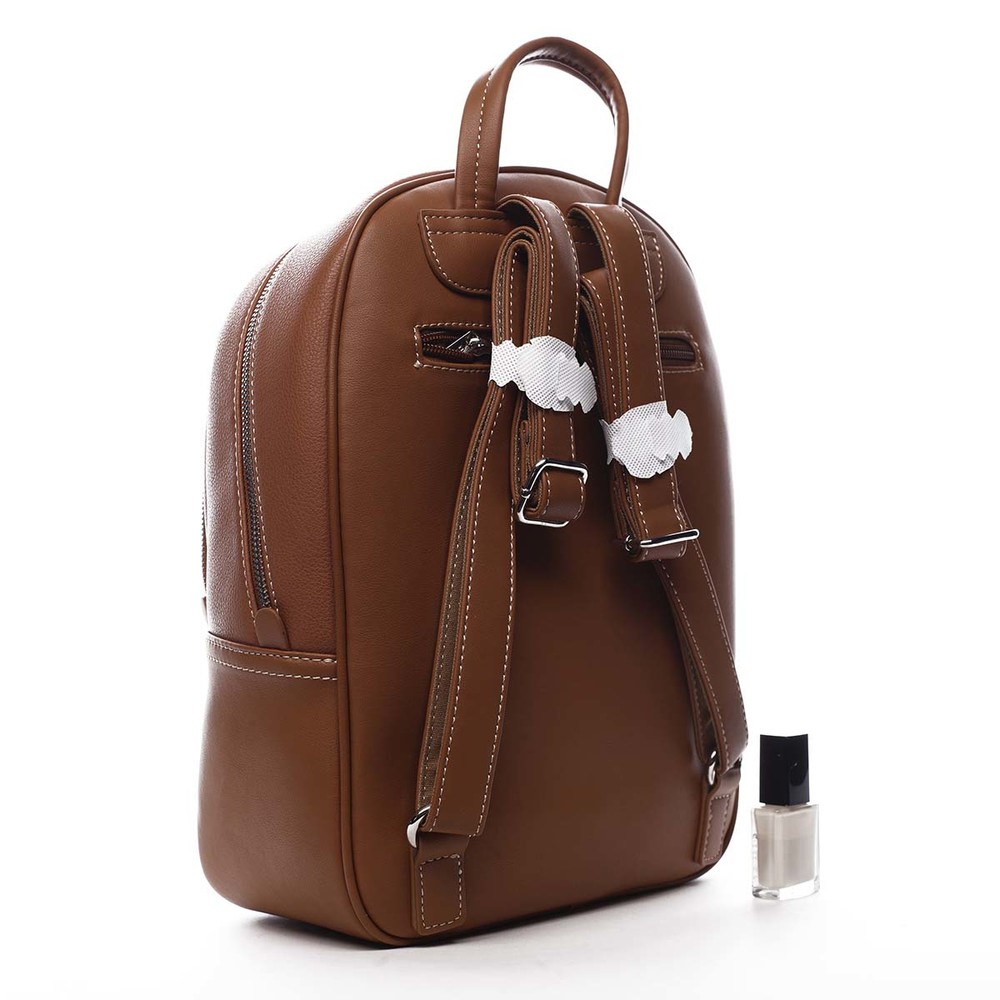 Další novinkou od David Jones je větší městský batoh. Pevnější zakulacený batůžek je pro dámy, které mají rády svůj prostor, jsou osobité a trvají na moderním, spíše ležérním, stylu. Tento světle hnědý model Vám nabídne dostatečný prostor na osobní i další věci. Hlavní kapsa, stejně jako ty další, se otevírá zipem, uvnitř je volná kapsička na telefon a kapsička na drobnosti. Do přední kapsy uložíte doklady, diář, klíče a jsou tu přihrádky i na vizitky či kreditní karty. Zadní kapsička poslouží na klíče či makeup. Popruhy jsou podšité látkou. Batoh do města, na rande i na procházky. Objednejte ještě dnes a vyzkoušejte, vrátit ji můžete až za 30 dnů!