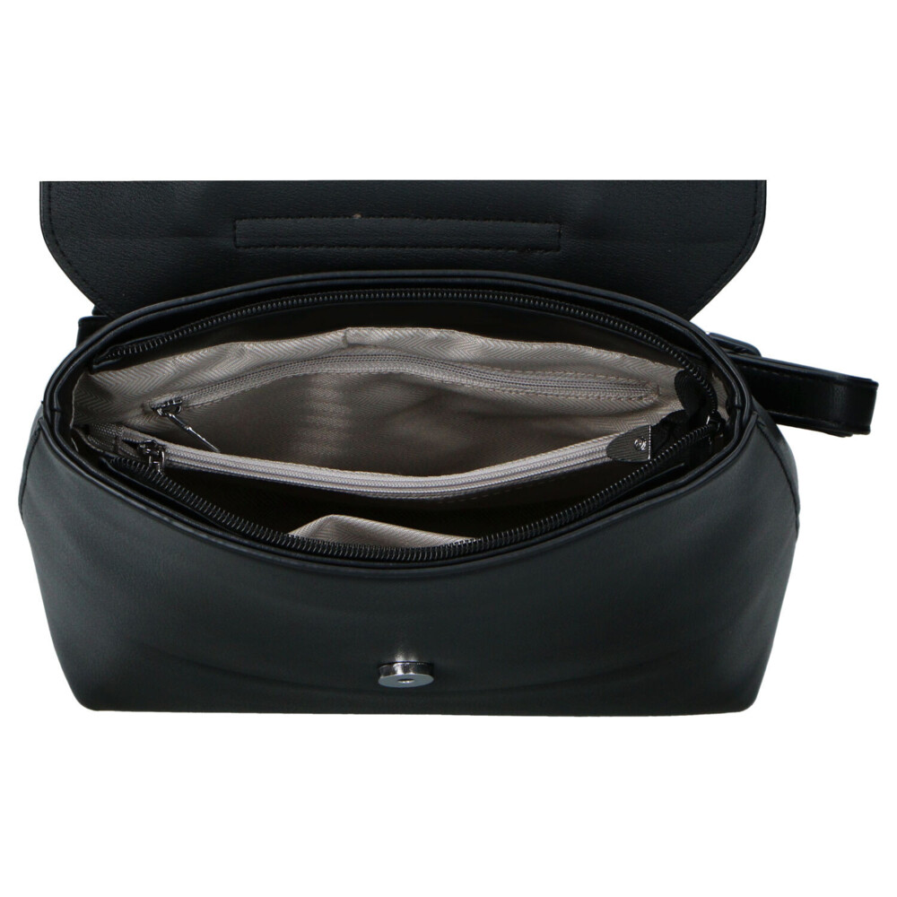 Stylový koženkový kabelko-batoh zaujme čistými liniemi a pevným tvarem, který si zachovává elegantní vzhled po celý den. Praktická klopa se zapínáním na magnetický druk ukrývá hlavní prostor se zipem, kde najdete kapsičky v podšívce i středovou zipovou přepážku pro přehledné uspořádání. Díky chytrému řešení nastavitelné popruhy jediným zatažením snadno proměníte z batohu na kabelku přes rameno nebo pohodlné crossbody. Pevné horní ucho usnadní nošení v ruce, zatímco zadní zipová kapsa poskytne rychlý přístup k drobnostem. Stříbrné kování dodává modelu moderní nádech a kovové nožičky na spodní části chrání batoh při odložení. Elegantní a všestranný doplněk pro každý den. Objednejte ještě dnes a vyzkoušejte, vrátit jej můžete do 30 dnů.