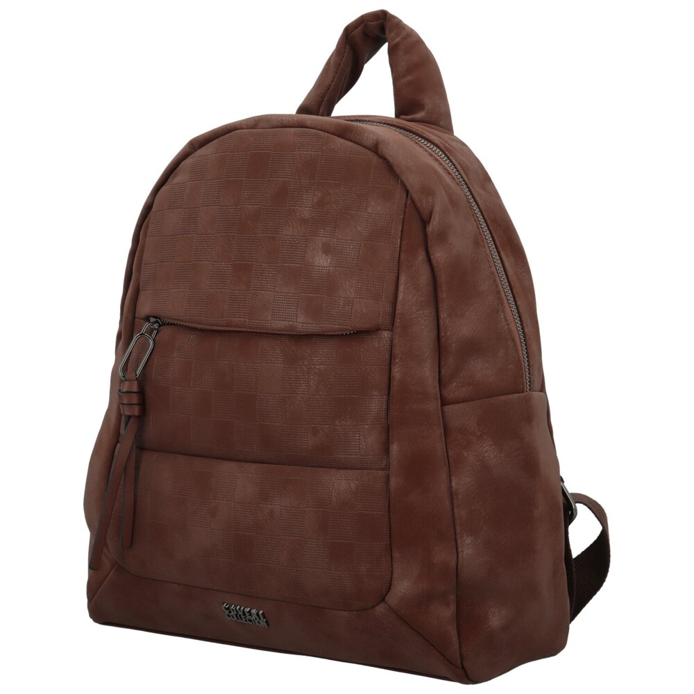 Moderní koženkový batůžek, který zaujme svým decentním designem. Přední stranu zdobí jemný čtverečkovaný motiv a praktická zipová kapsa, ve spodní části nechybí logo značky. Hlavní kapsa je na zip a uvnitř se nachází kapsičky v podšívce, včetně dvou zipových přihrádek pro bezpečné uložení drobností. Batůžek má pevné ucho pro snadné přenášení v ruce a nastavitelné textilní popruhy, které zajistí pohodlné nošení na zádech. Na zadní straně je navíc umístěna zipová kapsa. Tmavě stříbrné kování podtrhuje elegantní vzhled tohoto praktického doplňku. Objednejte ještě dnes a vyzkoušejte, vrátit ho můžete až za 30 dnů!
