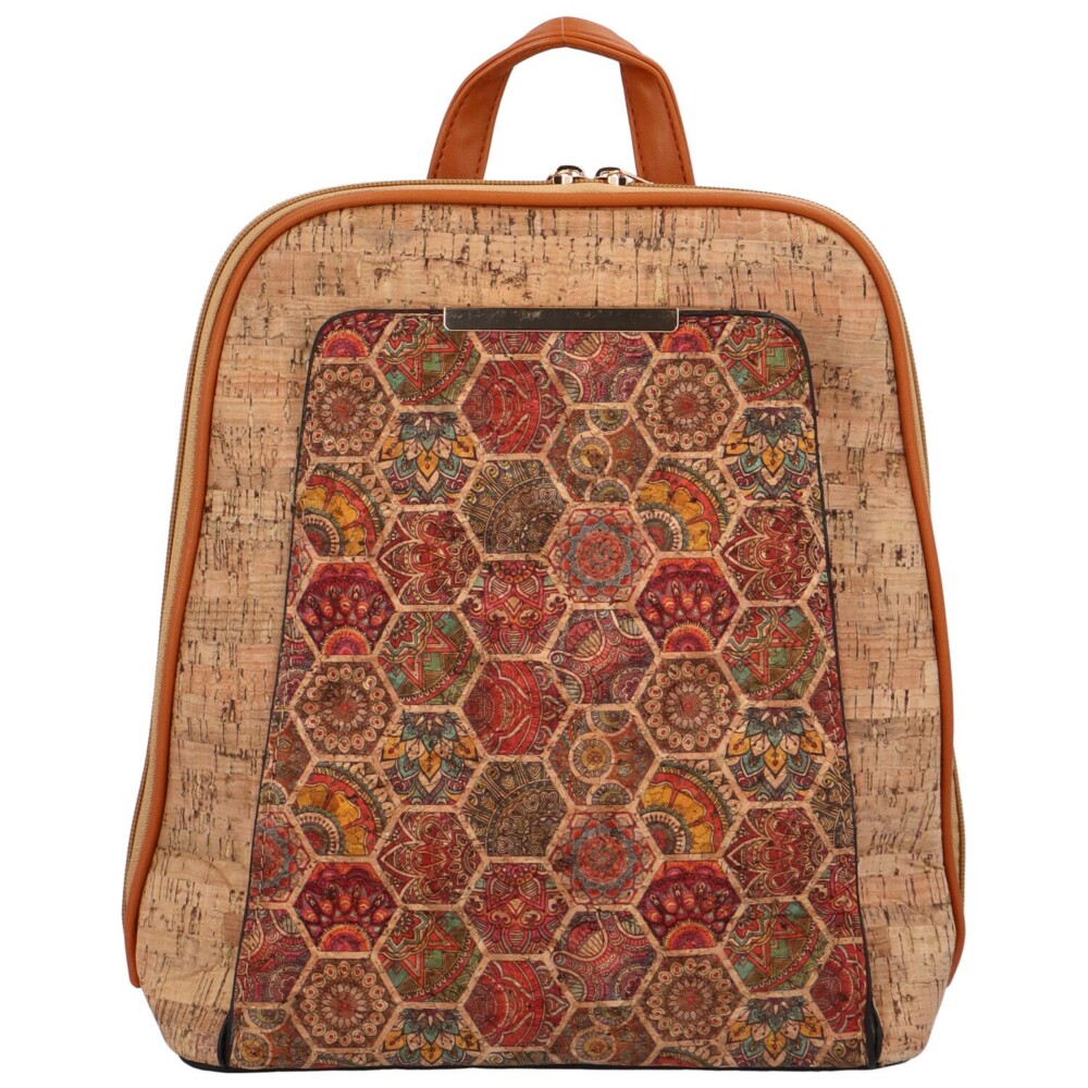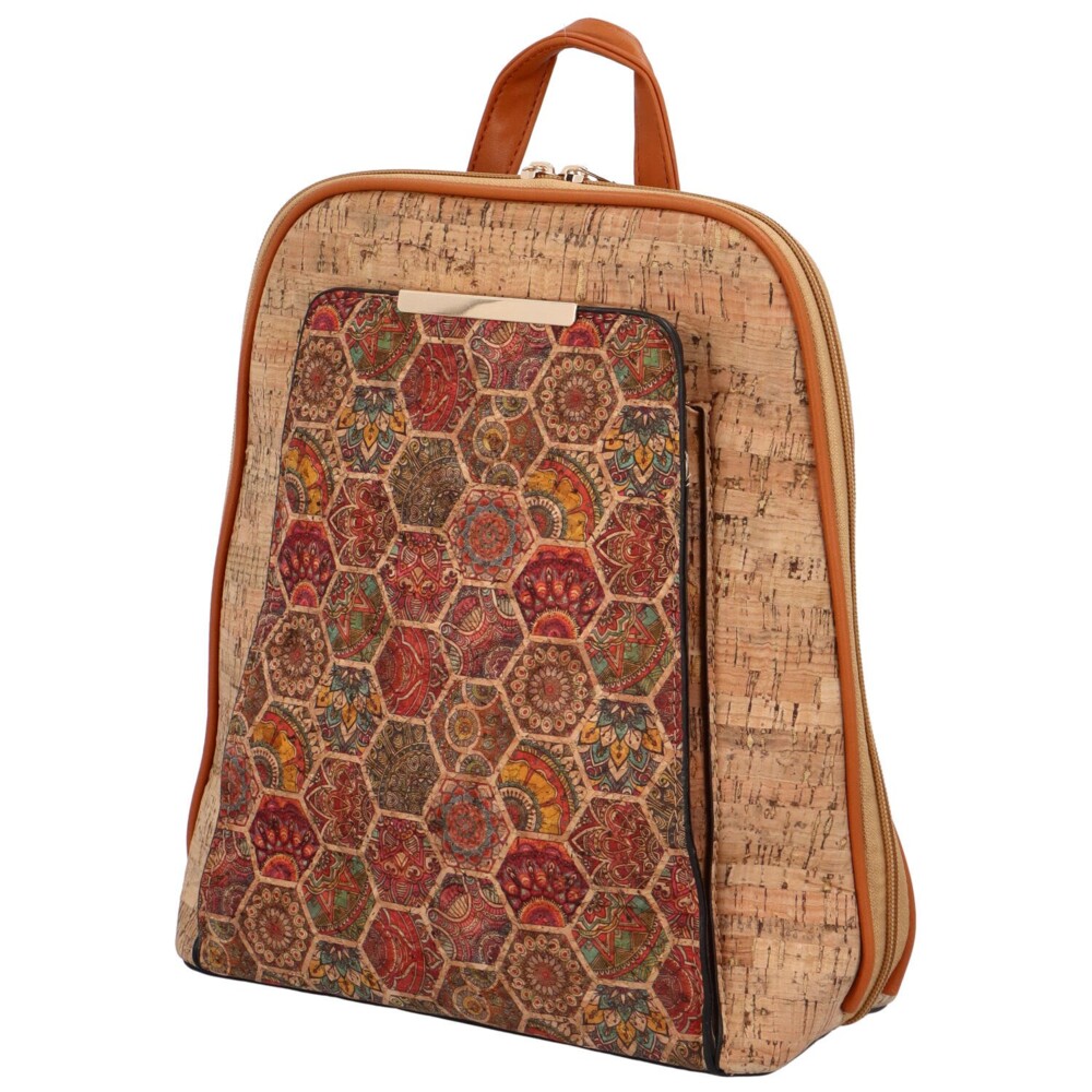 Tento dámský batůžek do města, od značky Firenze, vás zaujme svým svěžím designem a překvapí svou praktickou stránkou. Jednoduše si jej zamilujete. Korek je skvělý přírodní materiál pro letní dny. Díky koženkovým prvkům je tento model praktický, potisk dodává originální vzhled každému modelu a kování ve zlaté barvě dokresluje celkový dojem z batůžku. Objednejte ještě dnes a vyzkoušejte, vrátit ji můžete až za 30 dnů! Na přední straně najdete menší kapsu na druk s ozdobným kováním na horním okraji. Hlavní úložný prostor uzavřete decentním zipem. Zip je prodloužen až ke spodnímu okraji, díky tomu batůžek více rozevřete. Otevřenou kapsu po stranách zachycuje našitý materiál. Uvnitř najdete otevřené přihrádky a uzavíratelnou kapsu všitou do podšívky. Koženkové popruhy jsou našity napevno a ladí s celkovým designem batůžku. Můžete regulovat jejich délku.