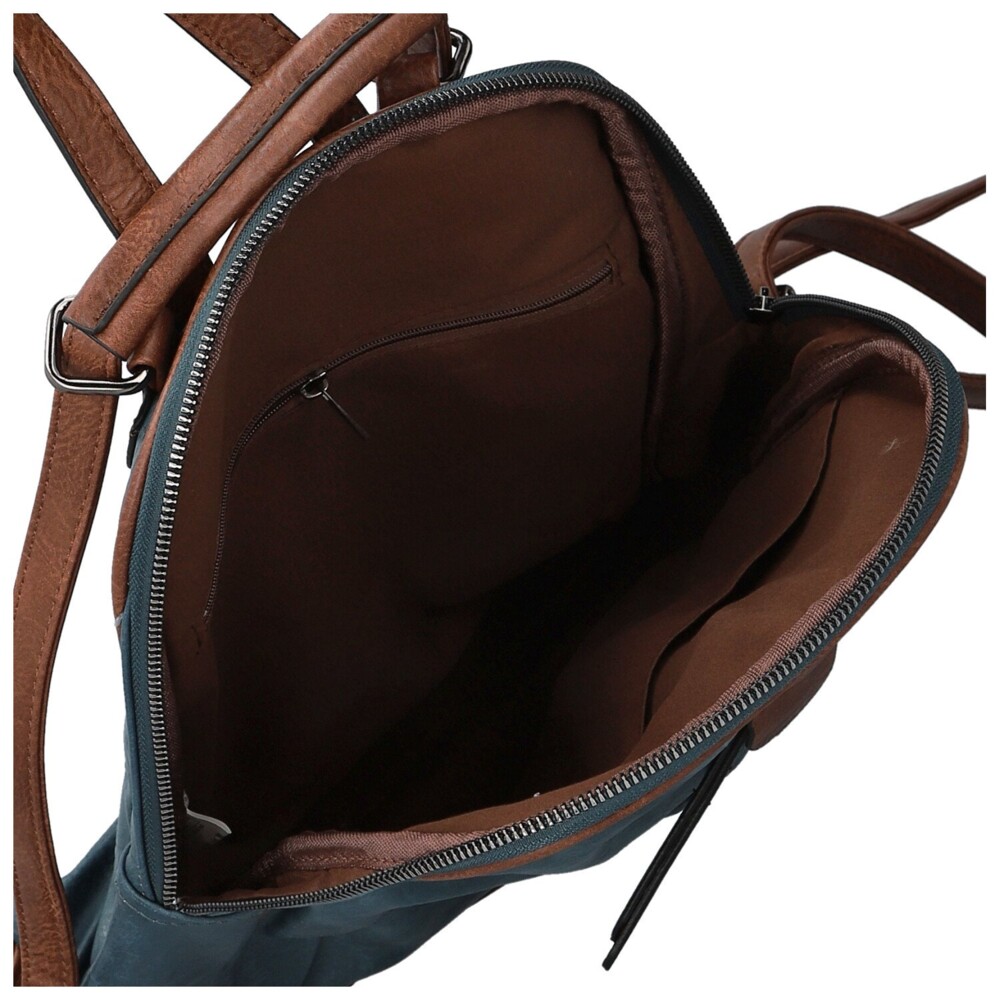 Koženkový kabelko-batoh, který spojuje praktičnost batohu a elegantní vzhled kabelky, zaujme už na první pohled svou originálně řešenou přední stranou. Dominantní hladký povrch v podzimním odstínu doplňují hnědé detaily, od horního lemu, přes pevné ucho, nastavitelné popruhy až po detail ve spodní části. Do přední strany je chytře ukrytá svislá zipová kapsa, ideální na drobnosti. Hlavní kapsa je zabezpečena zipem a uvnitř najdete praktické kapsičky v podšívce pro lepší organizaci. Na zadní straně nechybí další zipová kapsa, skrytá a bezpečná. Batoh je vybaven nastavitelnými popruhy, které se pohodlně přizpůsobí. Vše doplňuje stříbrné kování. Objednejte ještě dnes a vyzkoušejte, vrátit jej můžete až do 30 dnů!