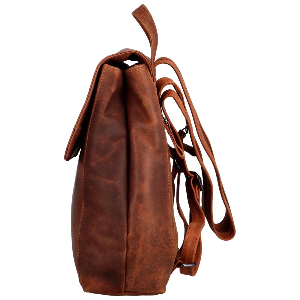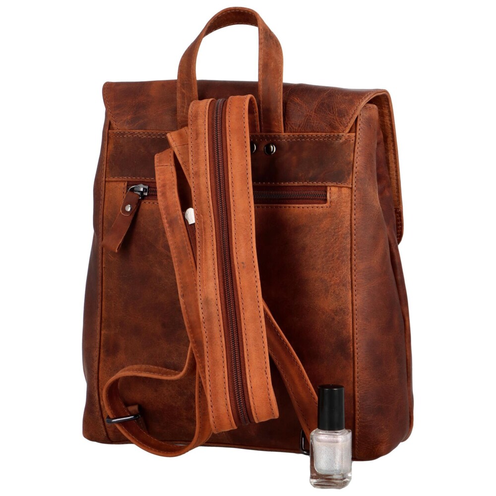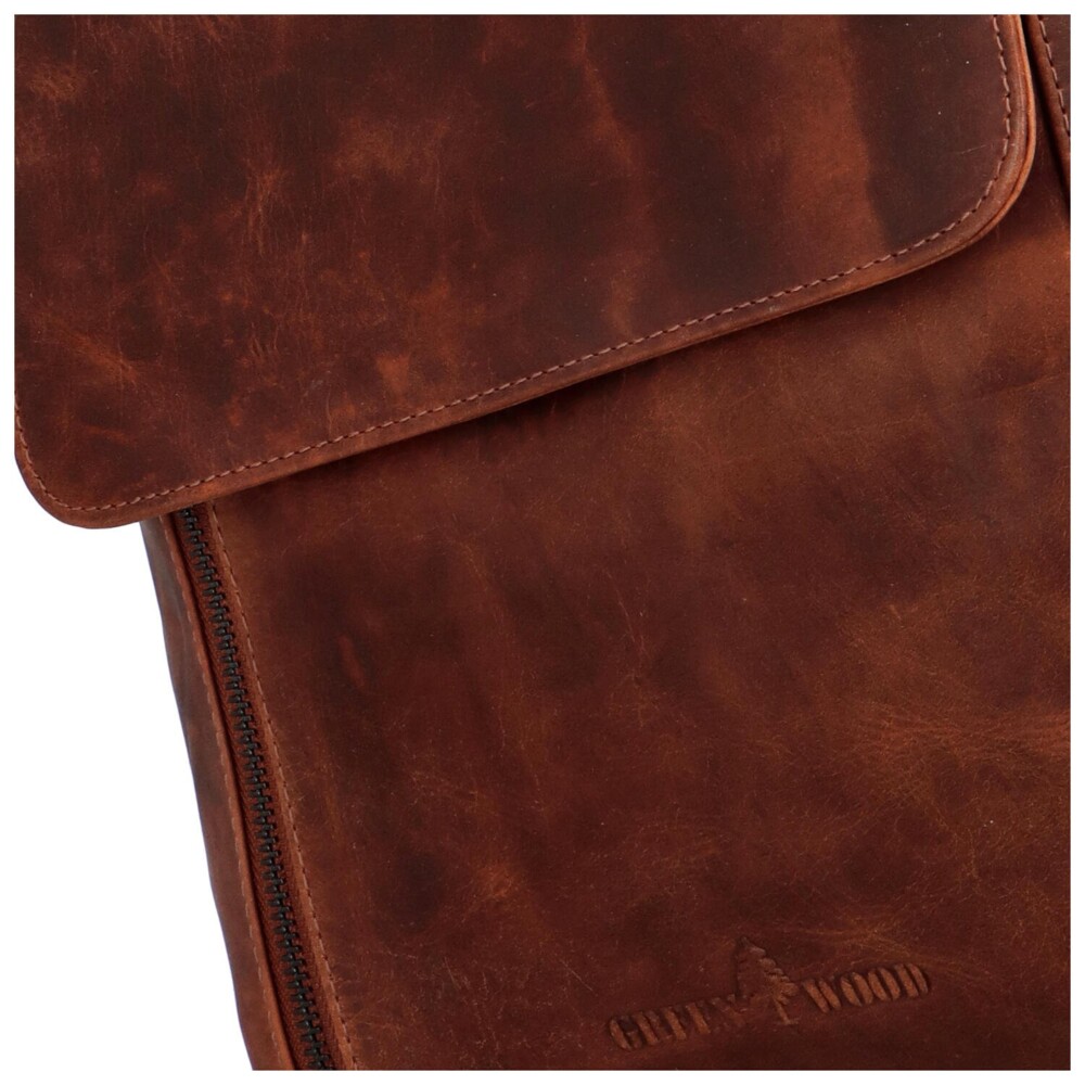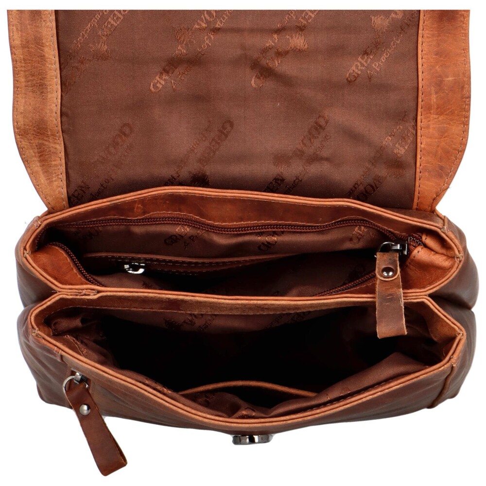 Objednejte dnes, vyzkoušejte, vrátit můžete až za 30 dnů! Dámský stylový batůžek z kvalitní přírodní kůže od značky Greenwood ve střední velikosti poslouží do města, na procházky i do přírody. Batůžek je střední velikosti, pod klopou na druk má dvě hlavní kapsy uzavíratelné zipem. Spodní část klopy je z hrubší neopracované kůže. Batůžek lze nosit na zádech, při zapnutí zádových popruhů zipem lze nosit i přes rameno. Na zadní straně batohu najdete menší kapsičku na zip. Každý produkt značky Greenwood je ručně vyrobený. Drobné škrábance a oděrky nejsou závadou kůže, časem a užíváním získají svůj individuální charakter a patinu.