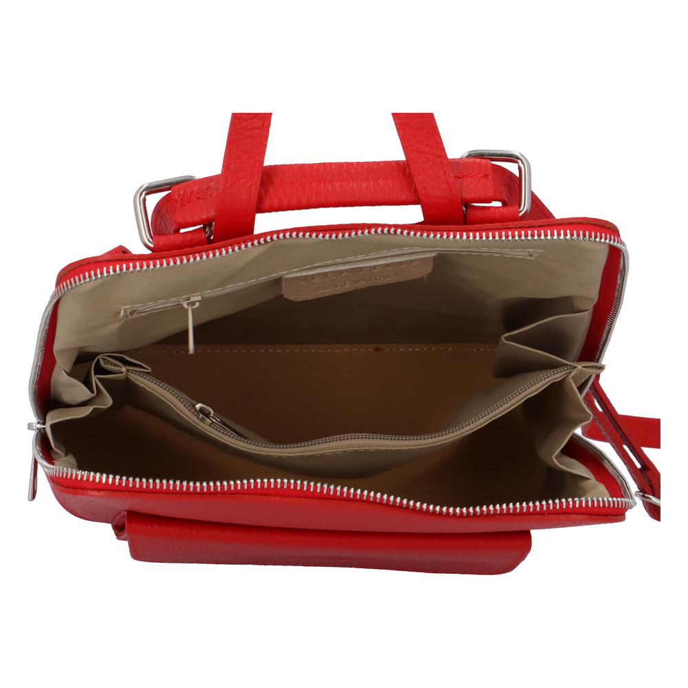 Dámský kožený batůžek kabelka červený - ItalY Septends