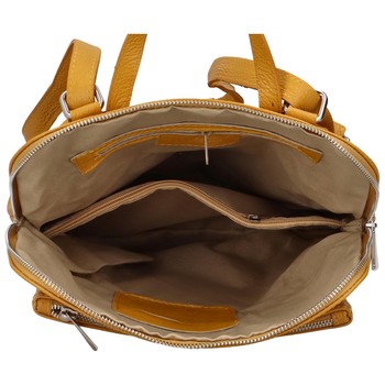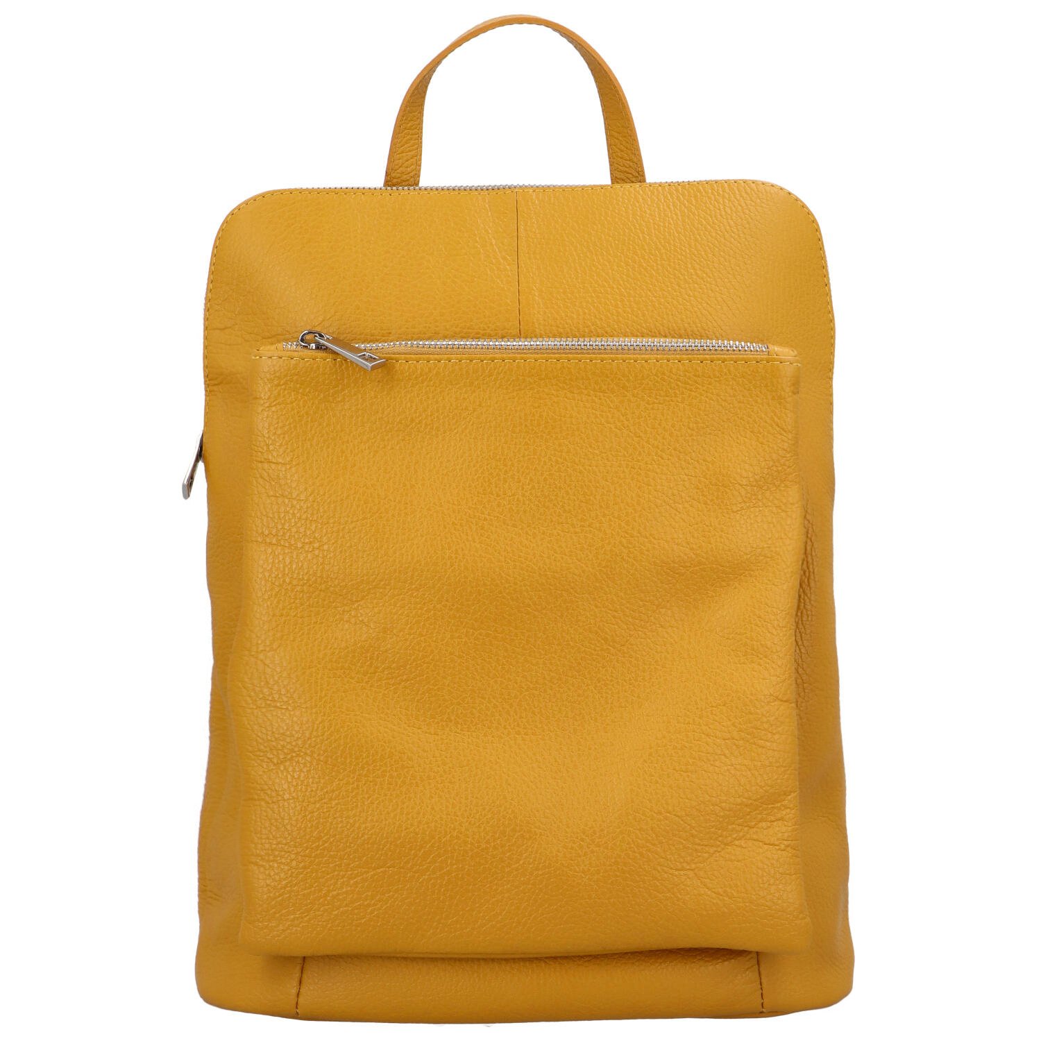 Dámský kožený batůžek kabelka tmavě žlutý - ItalY Houtel