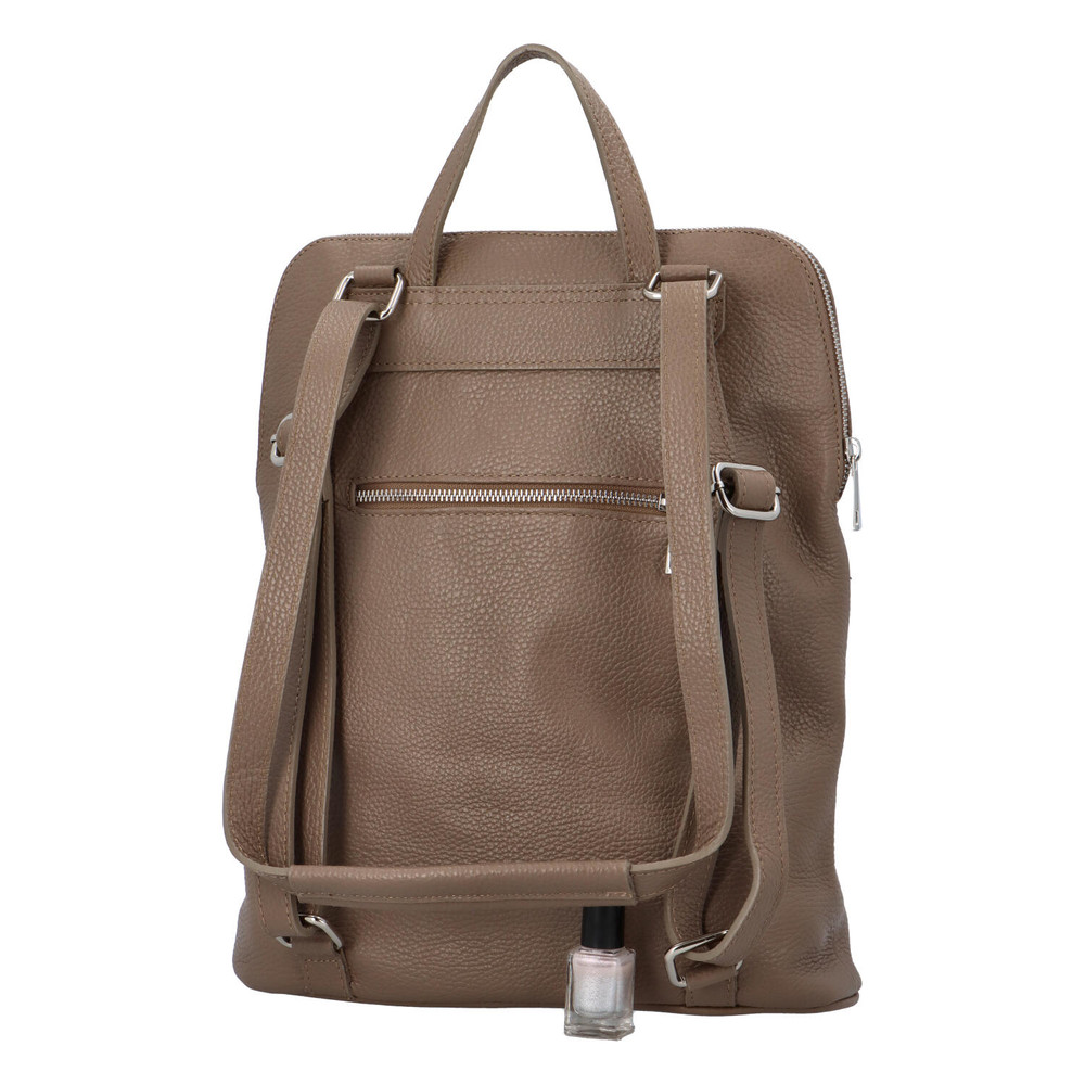 Dámský kožený batůžek kabelka tmavý taupe - ItalY Houtel