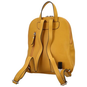Objednejte ještě dnes a vyzkoušejte, vrátit ji můžete až za 30 dnů! Dámský stylový batůžek do města v tmavší žluté barvě. Krásný, luxusní a módní batoh z hovězí kůže má lehce vrásčitý povrch. Jeho popruhy jsou celokožené. Na přední straně jsou dvě svislé kapsičky se zipem a další svislou kapsičku na zip najdete na zadní straně batohu. Hlavní kapsa má duální zip, který lze rozepnout až ke spodní pevnější části batohu. Uvnitř najdete volnou kapsu na telefon nebo make-up a kapsičku se zipem na další drobnosti.