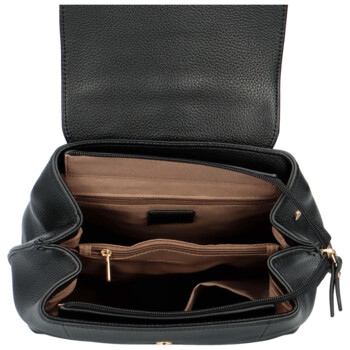 Luxusní dámská novinka od značky Hexagona. Tento krásný pevný batoh pro každý den musíte mít. Dodá vašemu outfitu jiskru a zároveň poslouží jako praktický doplněk při každodenních povinnostech. Kvalitní středně velký batoh vás zaujme poloviční klopou s magnetem, který má vzhled přezky s páskem. Pod klopou je hlavní kapsa na zip. Vnitřní prostor se rozděluje látkovou kapsičkou se zipem a chybět vám zde nebudou ani malé kapsičky na drobnosti. Samozřejmostí je kapsa na zip na zadní straně batůžku. Novinka. Objednejte ještě dnes a vyzkoušejte, vrátit jej můžete až za 30 dnů! Černý, lehce strukturovaný, koženkový batoh pro ženy na každý den.