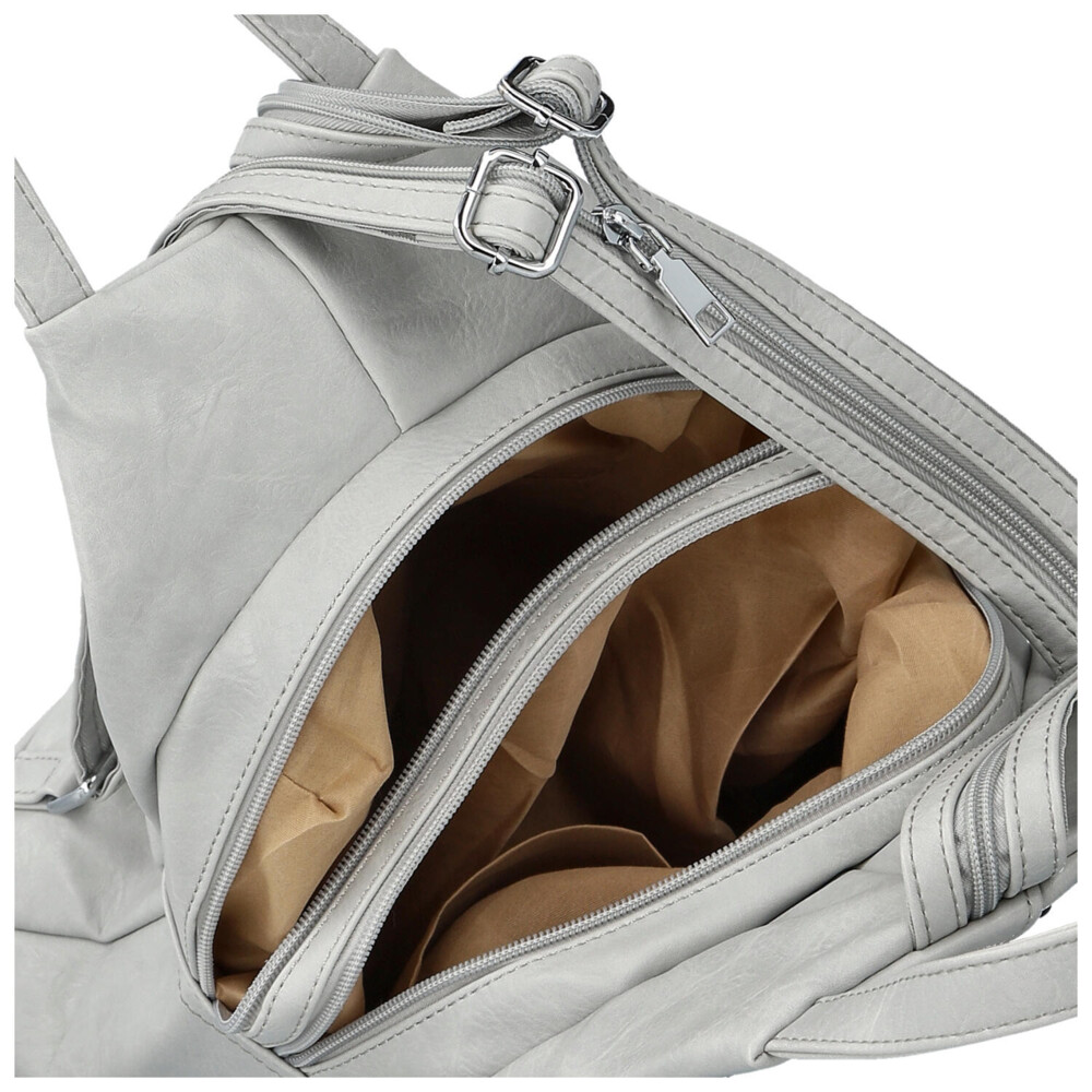 Módní a moderní kousek z dílny značky Firenze. Světle šedý lehký batůžek do města, do práce nebo na procházky. Batoh můžete nosit na zádech i přes rameno, popruhy lze sepnout zipem. Hlavní kapsa se také otevírá zipem. Další kapsičky se zipem jsou na přední i zadní straně. Samozřejmostí jsou kapsičky i uvnitř měkkého batůžku. Objednejte ještě dnes a vyzkoušejte, vrátit ji můžete až za 30 dnů!