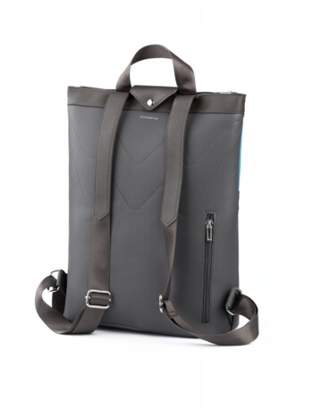Originální, praktický a stylový batoh v tmavě šedé a světlé až nebesky modré barvě, od značky Vuch. Objednejte ještě dnes a vyzkoušejte, vrátit ji můžete až za 30 dnů! Hlavní kapsa se otevírá zipem, přepíná se malým páskem se cvokem. Uvnitř najdete přihrádku na malý notebook (rozměry na dotaz). Syntetický batoh do města nebo na cesty do práce nabídne i další kapsičky a to na zip, na přední i zadní straně. Nosit jej lze i za ucho. Popruhy batohu jsou z části syntetické a z části z polyesteru. Tento batoh je opravdu originální a velmi zajímavý.