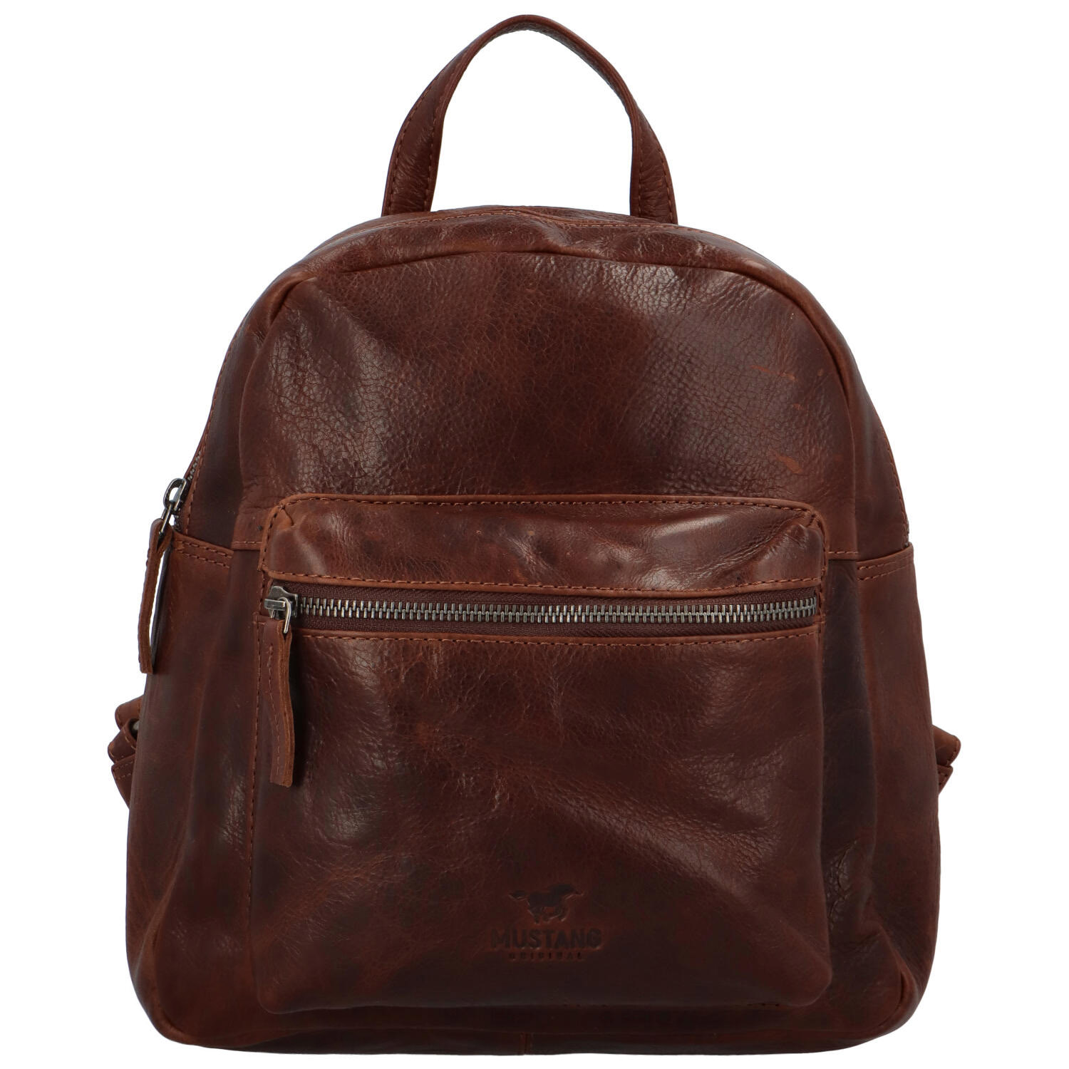 Kožený batoh Mustang hnědé barvy. Jedinečný design, propracované detaily a kvalitní kůže dělají z toho batohu ten pravý pro vás. Hlavní kapsu uzavřete na kovový zip, uvnitř je přihrádka na telefon a malá kapsa na zip. Přední i zadní strana batohu nabídne další kapsy na zip. Popruhy jsou celokožené, nastavitelné a pevné. Batoh lze nosit i v ruce za ucho v horní části.