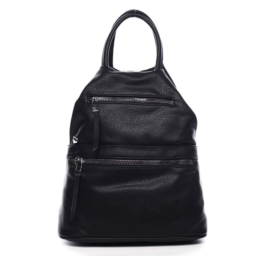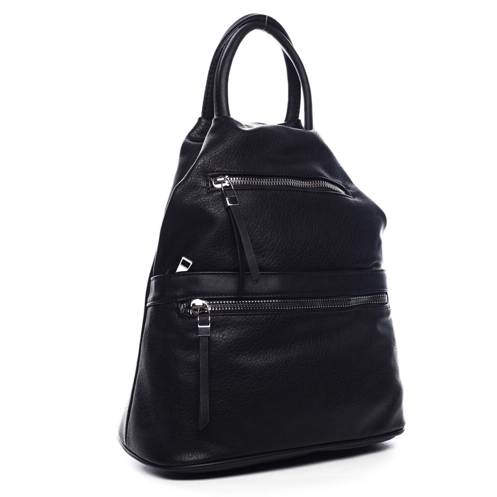 Kdo by nevyužil nabídky moderního a prostorného kousku 2v1, v podobě batohu a kabelky. Značka ROMINA & CO BAGS si pro Vás připravila černý model, který můžete kombinovat jak je libo a téměř k čemukoli. Všední situace budou více stylové a mimoměstské činnosti pohodlnější. Objednejte ještě dnes a vyzkoušejte, vrátit ji můžete až za 30 dnů! Prohlédněte si přední stranu, kde uvidíte dvě střední kapsy s robustnějšími zipy, třetí kapsa není tolik viditelná, nachází se za lemem syntetiky, v půlce přední strany a otevírá se také zipem. Díky celkem pevným uším můžete kabelku nosit v ruce, mezi ušima je originální hlavní kapsa se zipem. Další kapsa se zipem je na zadní straně. Popruhy jsou částečně odnímatelné a lze je rozdělit zipem. Model se tak může nosit přes rameno i crossbody. Celkově je taška měkká, má ale pevnější oválné dno.