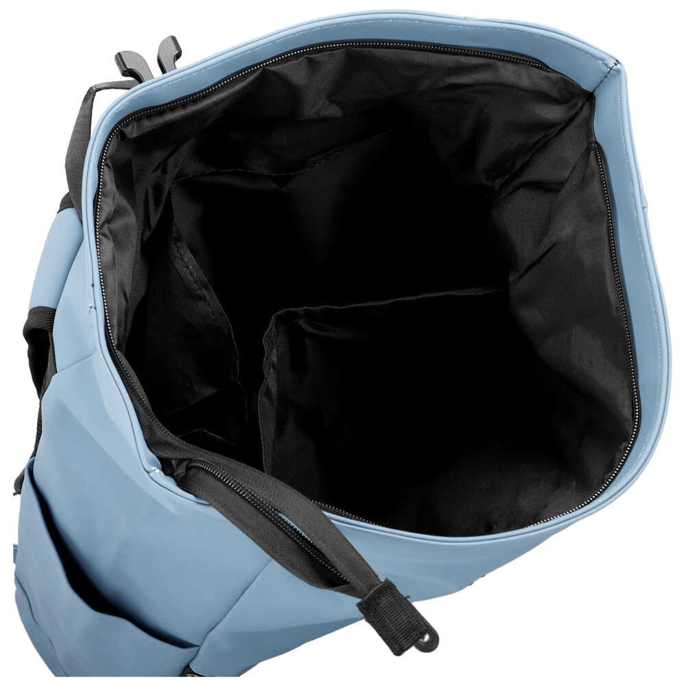 Moderní studentský batoh ze syntetického pogumovaného materiálu, který zaujme stylovým městským designem i vysokou praktičností. Trendy barevné provedení skvěle doplňují černé detaily, jež batohu dodávají výrazný a současný vzhled. Hlavní kapsa se zapínáním na zip nabízí dostatek prostoru na učebnice i každodenní nezbytnosti. Uvnitř nechybí praktické kapsičky v podšívce. Vrchní část lze jednoduše srolovat a zajistit přezkou, což dodává batohu moderní urban styl a zároveň možnost přizpůsobit objem podle potřeby. Přední stranu zdobí dvě výrazné svislé zipové kapsy pro rychlý přístup. Po stranách se nachází dvě otevřené kapsy ideální na láhev nebo další drobnosti. Pohodlí při nošení zajišťují vypolstrovaná záda, nastavitelné ramenní popruhy a pevné horní ucho pro snadné přenášení. Skvělá volba do školy, města i na volný čas. Objednejte ještě dnes a vyzkoušejte, vrátit jej můžete až do 30 dnů!