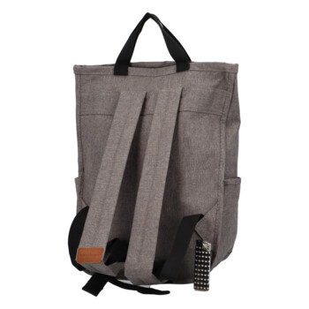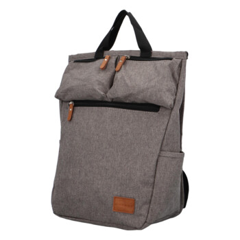 Značka New Rebels Vám opět dokazuje svůj skvělý vkus. Jako novinku Vám můžeme představit tento moderní batoh v šedé barvě. Objednejte ještě dnes a vyzkoušejte, vrátit jej můžete až za 30 dnů! Středně velký batůžek potěší ženy i muže. Batoh je také velmi praktický a to zejména díky třem kapsám se zipy na přední straně. Zaujmou Vás ovšem také volné kapsy na bocích batohu. Můžete jej nosit v ruce i na rameni, popruhy jsou lehce polstrované. Hlavní kapsa se otevírá zipem, uvnitř jsou kapsičky na mobil a drobnosti a nechybí Vám polyesterová přihrádka na tablet (max. 28 x 26,5 cm). Doplňkem batohu jsou hnědé detaily.