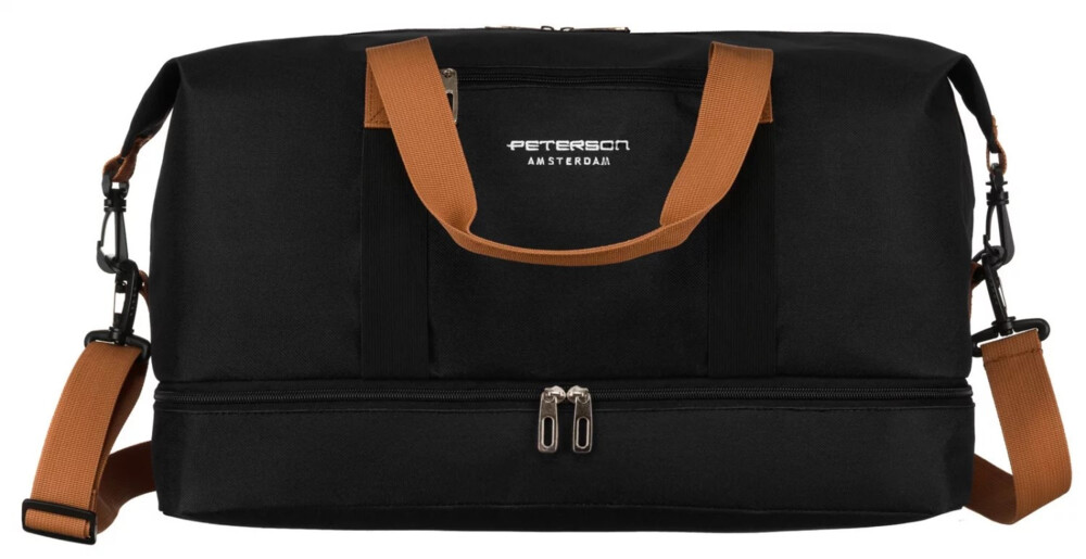 Univerzální textilní taška značky Peterson spojuje moderní design a praktičnost. Hlavní kapsa se zapínáním na zip nabízí dostatek prostoru pro oblečení či jiné věci a uvnitř se nacházejí menší kapsičky v podšívce pro přehledné uspořádání drobností. Spodní samostatná část na zip je ideální pro uložení bot nebo oddělení prádla. Taška má pevné uši pro pohodlné nošení v ruce a nastavitelný dlouhý popruh na připnutí přes rameno. Stříbrné a černé kování doplňuje celkový sportovně-elegantní vzhled. Ideální volba na cestování, do fitka i na víkendové výlety. Objednejte ještě dnes a vyzkoušejte, vrátit ji můžete do 30ti dnů!