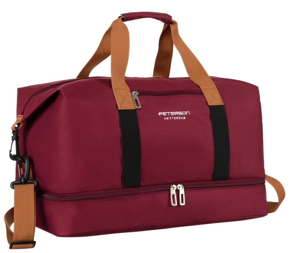Univerzální textilní taška značky Peterson spojuje moderní design a praktičnost. Hlavní kapsa se zapínáním na zip nabízí dostatek prostoru pro oblečení či jiné věci a uvnitř se nacházejí menší kapsičky v podšívce pro přehledné uspořádání drobností. Spodní samostatná část na zip je ideální pro uložení bot nebo oddělení prádla. Taška má pevné uši pro pohodlné nošení v ruce a nastavitelný dlouhý popruh na připnutí přes rameno. Stříbrné a černé kování doplňuje celkový sportovně-elegantní vzhled. Ideální volba na cestování, do fitka i na víkendové výlety. Objednejte ještě dnes a vyzkoušejte, vrátit ji můžete do 30ti dnů!