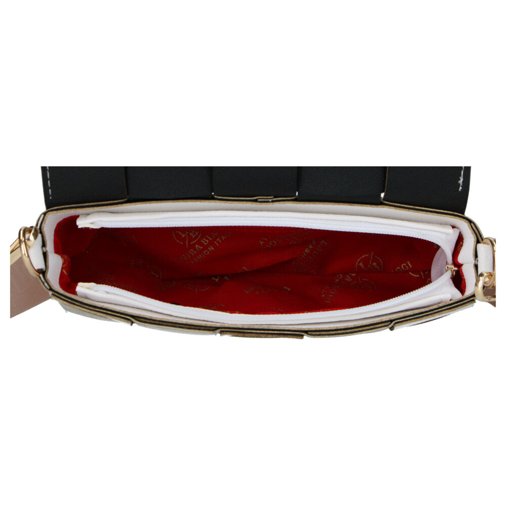 Nepřehlédnutelná crossbody kabelka značky Laura Biaggi, která okouzlí moderním vzhledem a svěží energií. Syntetický materiál je designově propletený do efektivního vzoru, díky kterému kabelka působí luxusně, originálně a dokonale trendy. Přední stranu zdobí elegantní logo značky, které podtrhuje její stylový charakter. Po otevření klopy s magnetickým drukem se ukrývá hlavní kapsa na zip, ve které najdete praktický prostor doplněný kapsičkami v podšívce. Součástí kabelky je nastavitelný textilní popruh na připnutí, které zajistí pohodlné nošení přes rameno i crossbody. Luxusní zlaté kování dodává modelu šmrnc a elegantní lesk. Objednejte ještě dnes a vyzkoušejte, vrátit ji můžete až do 30 dnů!