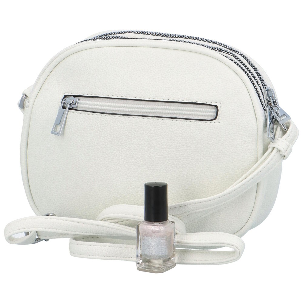 Představujeme moderní a jednoduchou kabelku značky Maria C. Malá, oblá kabelka se nosí crossbody, přes tělo nebo přes rameno. Jde o bílý trendy model do města, ale hlavně za zábavou! Pojme základní potřebné věci, jako je telefon, klíče, peněženka a make-up. Má lehce vrásčitou strukturu, tři kapsy na zip a nechybí ani kapsičky na drobnosti. Objednejte ještě dnes a vyzkoušejte, vrátit ji můžete až za 30 dnů! Koupě této kabelky nemůže být chyba!