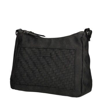 Dámská crossbody kabelka z černé broušené koženky v provedení na šířku. Dlouhý, nastavitelný popruh poslouží k nošení na rameni i do kříže. Kabelku využijete každý den díky jejímu ideálnímu tvaru a velikosti. Kabelka má dvě hlavní kapsy na zip, uvnitř menší přihrádky na drobnosti. Přední strana je zdobena zajímavým pleteným vzorem a logem značky. Objednejte ještě dnes a vyzkoušejte, vrátit ji můžete do 30ti dnů.
