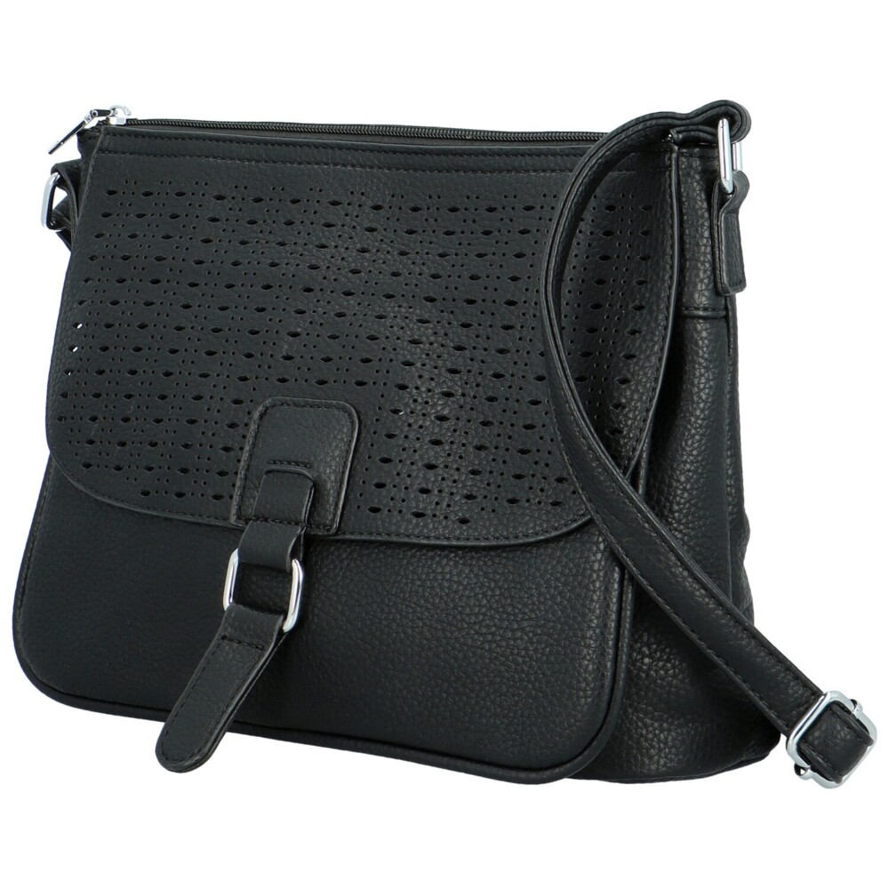 Doplňte svůj outfit stylovou crossbody kabelkou, která zaujme na první pohled. Vyrobená z jemné, ale odolné koženky, s originálně děrovanou klopou, která jí dodává moderní a lehce romantický vzhled doplněná o ozdobný pásek se stříbrnou přezkou. Pod klopou je malá kapsička. Hlavní kapsa je na zip a uvnitř ní je prostor dělený středovou zipovou kapsou, nechybí postranní kapsičky v podšívce pro drobnosti. Kabelka má nastavitelný dlouhý popruh, pro nošení přes rameno i do kříže. Zadní díl nabízí poslední kapsičku na zip. Objednejte ještě dnes a vyzkoušejte, vrátit ji můžete až za 30 dnů!