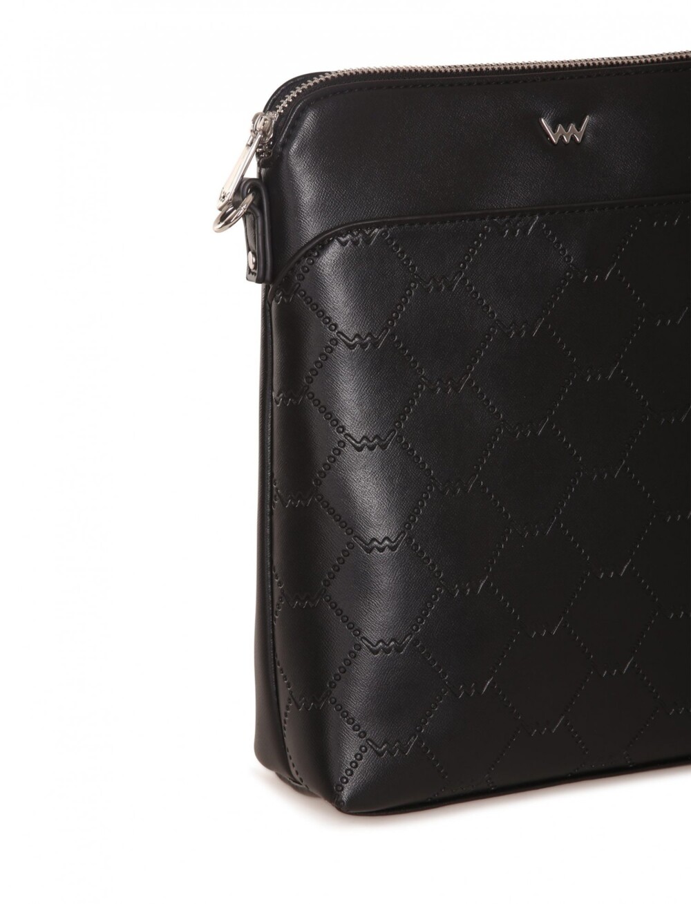 Nová kabelka v černé barvě od značky Vuch! Objednejte ještě dnes a vyzkoušejte, vrátit ji můžete až za 30 dnů! Dámská crossbody kabelka nebo kabelka přes rameno, do města, na srazy a schůzky, anebo ji využijete na cestách do práce. Jedná se o středně velkou syntetickou kabelku, kterou můžete nosit z obou stran. Každá si přijde na své. Uložit si do ní můžete vše potřebné a dokonce i nepotřebné, věci na víc. :) Pojme toho, na svou velikost, opravdu dost. Hlavní kapsa se zapíná zipem. Na straně se vzorováním je kapsa na magnet, z druhé strany najdete svislou kapsičku se zipem.