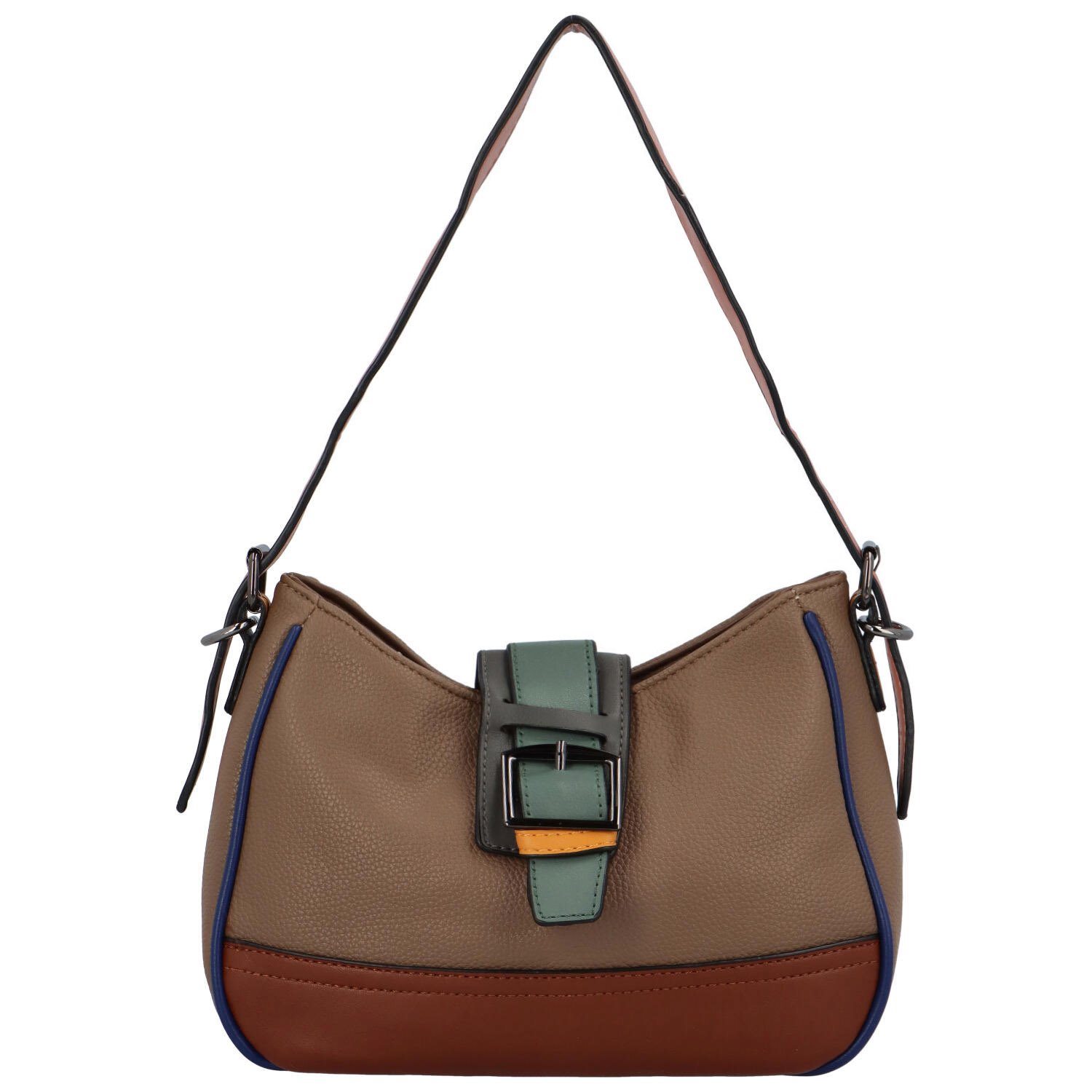 Trendy koženková crossbody kabelka s ozdobnou klopou. Tato stylová kabelka vás zaujme hned na první pohled svým barevným provedením a okrasnou klopou ve tvaru přezky. Po otevření klopy se nabízí kapsa na zip a uvnitř jsou k dispozici menší kapsičky na vaše drobnosti. Na zadní straně nechybí další menší kapsička na zip. Kabelka má hned dva popruhy, jeden koženkový, kratší na rameno a jeden látkový dlouhý, sportovní na nošení do kříže. Objednejte ještě dnes a vyzkoušejte, vrátit ji můžete do 30ti dnů!